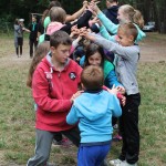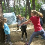 Po południu odbyły się prezentacje technik wychowawczych naszego patrona. W różnych miejscach opowiadaliśmy o nich obozowiczom oraz mówiliśmy, jak są one przeniesione do Korczakowa oraz dlaczego właściwie to robimy. W każdym punkcie dzieci musiały wykonać także pewne ciekawe zadanie, np. zaprojektować pocztówkę, taką, jakich Stary Doktor używał w swoim Domu Sierot. Ja, razem z druhną Gazelą, miałem punkt o Małym Przeglądzie. Opowiadaliśmy o tym, co to takiego, skąd się tak naprawdę wziął i dlaczego to funkcjonuje. Daliśmy również każdej grupie zadanie do wykonania: mieli napisać artykuł o dowolnej tematyce, np. o jakimś wydarzeniu, która miało miejsce w Korczakowie, mogli zrobić krzyżówkę lub przeprowadzić wywiad z kimś na obozie. Wyniki tych prac możecie zobaczyć na naszej stronie internetowej, gdzie umieszczone zostały te artykuły. Myślę, że po tych prezentacjach uczestnicy wiele sobie uświadomili i zrozumieli niektóre zwyczaje, którym tu hołdujemy.