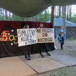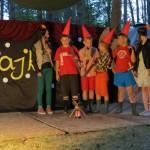 Czarownice, mówiące zwierzęta, rycerze, księżniczki, krasnoludki – to wszystko staje się realne podczas Bajkolandii. Podczas tego wydarzenia każda grupa, składająca się z dwóch zastępów, ma za zadanie wymyśleć i wystawić bajkę na podany wcześniej tytuł. Wymyślone przez Natalię Kowalską i Hanię Mądry tytuły bajek były abstrakcyjne, ale przez to również interesujące, na przykład nasza grupa miała przedstawić bajkę pod tytułem: „Magiczne krzesło, które ucieka z miejsca zbrodni”, ale pojawiły się również: „Trzy lewe buty na drodze” i „Nos, który szukał swojej twarzy”. Wszyscy uczestnicy popisali się wielką kreatywnością pod względem kostiumów, scenariuszów oraz rekwizytów. Tytuły były interpretowane na wszelkie sposoby, co poskutkowało ogromną różnorodnością wśród bajek, które wystawiane były na scenie, zbudowanej specjalnie w tym celu. Pomiędzy bajkami, obozowicze odgrywali również krótkie, zabawne przerywniki, między innymi parodie reklam czy filmów o Jamesie Bondzie. Dzięki sumiennym przygotowaniom udało się nam zwalczyć tremę i wszystkie występy zakończyły się sukcesem. Po bajkach przyszedł czas na obrady Jury, które wcześniej oceniało bajki, oraz na występ beatboxera „Łysola”, który zapraszał do wspólnego beatboxowania również uczestników. Gdy Jury zakończyło obrady, ogłoszono wyniki (nasza grupa zajęła trzecie miejsce!) oraz rozdano nagrody dla najlepszej aktorki (Natalia Kędzia) i najlepszego aktora (Hubert Bartkowiak). Warto również wspomnieć, że całe wydarzenie zostało opracowane przez obozowiczki – Hanię Mądry i Natalię Kowalską.
