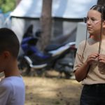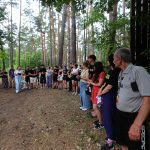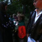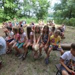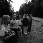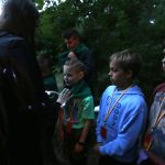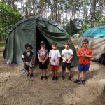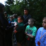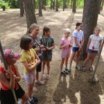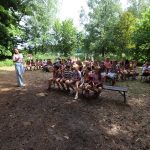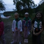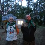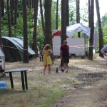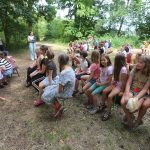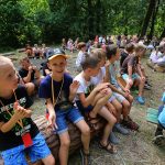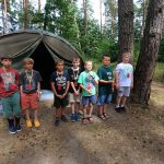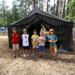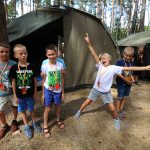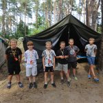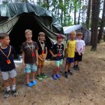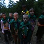Wczoraj w czasie biegu poznaliśmy wszystkie zasady obozowe. Oczywiście nie biegaliśmy, bo przecież nie można biegać, tylko chodziliśmy po różnych stacjach, na przykład: komenda, boisko, radio, łaźnia, toi-toi, stołówka, port. Wieczorem mieliśmy grę integracyjną, podczas której wybrani druhowie i druhny sprawdzali, czy zasługujemy na magiczną korczakowską chustę, czy jesteśmy dość sprytni, szybcy, mądrzy i zręczni. Na końcu poszliśmy pod pomnik Janusza Korczaka i wszyscy dostaliśmy chusty. Potem było ognisko i zaśpiewaliśmy 2 piosenki. W kręgu przesłaliśmy Iskierkę, niestety nie doszła.