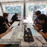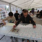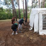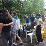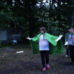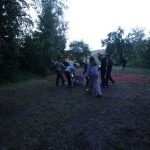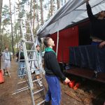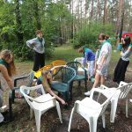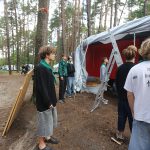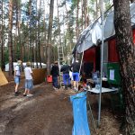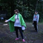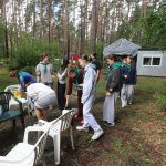 We wtorek pobudka zaczęła się 40 minut później niż zwykle (żebyśmy się po nocnych wędrówkach wyspali). Z głośników poleciał Ramstein oraz Stare Dobre Małżeństwo. Na śniadanie, oprócz standardowego zestawu druhny Reni, były też jajka. Po porannym posiłku pojechałem z druhem Igorem pomóc sprzątać świetlicę w Świniarach po poniedziałkowej ewakuacji. Zajęło nam to około 2 godzin. Gdy wróciliśmy na teren obozu okazało się, że znowu nie mogę wykapać się w jeziorze, ponieważ rzekomo mogą być w wodzie sinice (prawdopodobnie wiatr przywiał wszystkie glony, pyłki i drobinki na nasze kąpielisko, co nie wyglądało dobrze, na wszelki wypadek próbka pojechała do laboratorium – od red.), a do tego dh. Ratowniczka bardzo źle się czuje. Frustruje mnie taki stan rzeczy. Na obiad było bardzo dobre kaszotto z kurczakiem, a zupę tym razem kucharze przygotowali na kolację. Po ciszy poobiedniej wszyscy rysowaliśmy prace na konkurs do wybranego przez siebie tekstu piosenki śpiewanej w Korczakowie. Zajęcia zorganizowała dh. Gosia K. Narysowałem zegar, urnę oraz śmierć z kosą jako ilustrację do piosenki „Zegarmistrz światła”. Na kolację była zupa warzywna oraz standardowo zestaw druhny Reni. Po kolacji odbyło się ognisko, gdzie śpiewaliśmy oraz pląsaliśmy „Ojca Abrahama” i „Wyścigi konne”. Po ognisku poszliśmy spać.