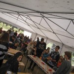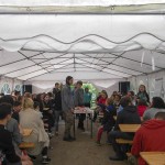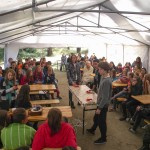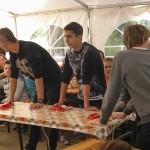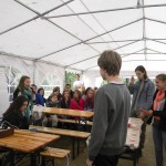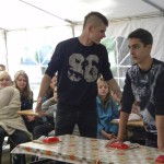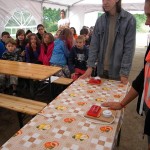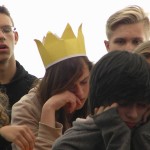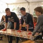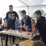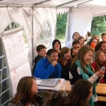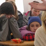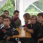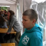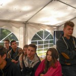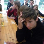Po ciężkiej pracy przyszedł czas na obiad. Kiedy wszyscy zjedli i chwilę odpoczęli zebraliśmy się znowu na stołówce, ale tym razem nie po to, by jeść. Zebraliśmy się tam na turniej muzyki filmowej. Podzielono nas na trzy grupy i poproszono o wymyślenie dla nich nazw. Niektórych poniosła fantazja i wymyślili bardzo dziwne nazwy których nie dało się napisać, ale bawiliśmy się przy tym bardzo dobrze. Później każda grupa wybrała lidera i każdy z nich stanął przy przycisku, który po wciśnięciu zaczynał grać, co oznaczało zgłoszenie się danej grupy do odpowiedzi. Turniej składał się z trzech części. Pierwszej polegała na zgadywaniu z jakiego filmu jest dana piosenka, jaki ma tytuł i kto jest jej autorem. W zależności od tego ile dana grupa wiedziała o piosence i jak szybko lider wcisnął przycisk, można było zebrać od 1 do 3 punktów. W drugiej części trzeba było odpowiadać na różne pytania związane z filmami: dokańczać cytaty, odgadnąć z jakiego filmu pochodzi dany cytat lub odpowiadać na różne niespodziewane pytania, np. „jakiego koloru są rękawiczki Minionków?”. W trzeciej części znowu zgadywaliśmy z jakiego filmu pochodzi dana piosenka, ale tym razem było trochę trudniej, bo filmy, z których pochodziły piosenki, były mniej znane. Turniej trwał dość długo, a emocje jakie mu towarzyszyły sięgały zenitu. Myślę, że dzień mimo tego, że był bardzo zimny, był też bardzo owocny i że filmy, do których zostały napisane scenariusze zachwycą nas wszystkich.
