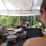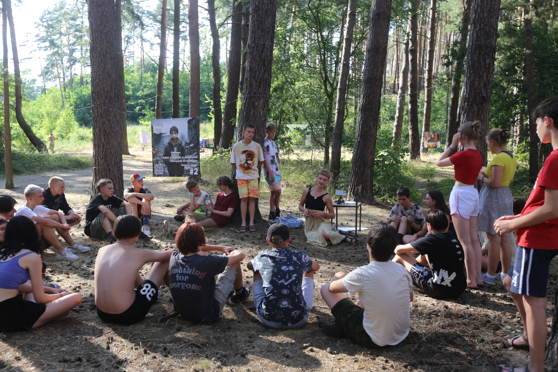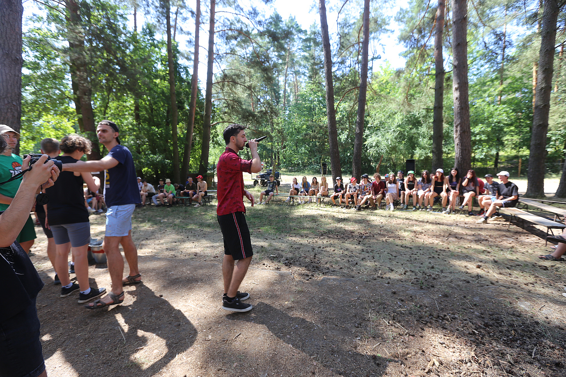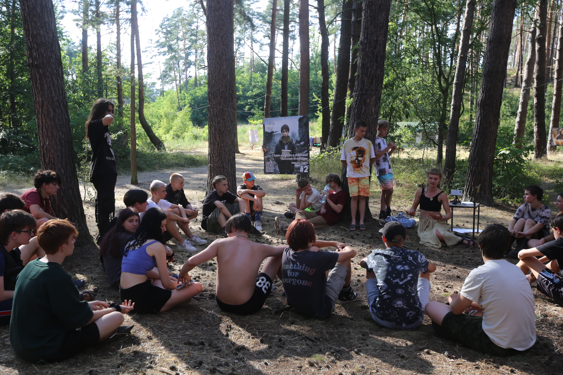 Wczoraj nie było zaprawy porannej, bo poprzedniego wieczoru odbył się Bal Meksykański i musieliśmy odpocząć. Na śniadanie można było zjeść owsiankę, taka odmiana, choć owsianka pojawia się dość często na naszych stołach. Po chwili wolnego rozpoczął się Turniej Firmowy. Zostaliśmy podzieleni na 3 grupy: hobbici, awionetki i andrewy. Było kilka konkurencji. Pierwsza polegała na przejściu nad linką, którą ustawiono na wysokości szyi druha Limo. Po drugiej stronie stał druh Maciek. Po zabawie mieliśmy trochę czasu na relaks, kąpielisko itp. Na obiad podano zupę kapuśniak oraz potrawkę z kurczaka. Po ciszy poobiedniej rozpoczęliśmy zajęcia w grupach. Podzielono nas na 3 zespoły. Pierwszy miał zajęcia z języka migowego z druhną Juchą, drugi rozmowy o uczuciach i relacjach międzyludzkich, trzeci prezentację o lotnictwie. Po kolacji śpiewaliśmy przy ognisku i odbył się uroczysty Wieczór Patrona, zakończony wartami pod Pomnikiem. Pod koniec ogniska druh Iwo zaprezentował swoje umiejętności gry na gitarze oraz śpiewu.