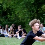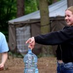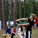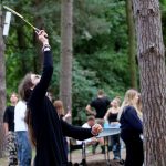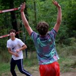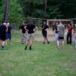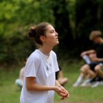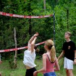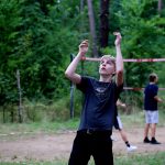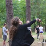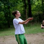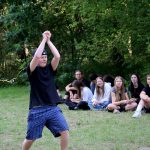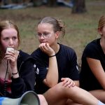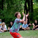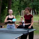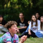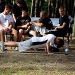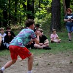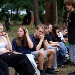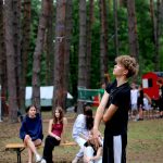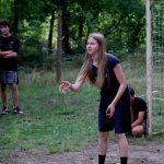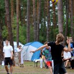 Na obiad cały obóz czekał z niecierpliwością, ponieważ kucharze nie chcieli zdradzić, co to będzie… Okazało się, że to BURITO! Chyba każdy był zadowolony! Nawet ból szczęki nie pokrzyżował planów Dosi , by się delektować tym meksykańskim daniem. Podczas ciszy poobiedniej Tosia została zawołana na próbę do Amfikoru przed koncertem naszego korczakowskiego zespołu ĄĘ. Reszta zastępu w tym czasie brała udział w olimpiadzie sportowej. Po bardzo emocjonującym finale siatkówki cały obóz udał się na kolację, na którą podano pastę jajeczno- awokadową! Danie szczególnie smakowało Margo! Od razu po kolacji Tosia znowu opuściła nasze szeregi i teleportowała się do Amfikoru. Reszta przygotowywała się do koncertowego wieczoru. Po koncercie stanęliśmy w wieczornym kręgu, ale inaczej niż zwykle, po kręgu nie mogliśmy iść do namiotów, tylko mieliśmy przy ognisku czekać na komunikaty. Ta informacja wzbudziła nutę ciekawości ponieważ już dzień wcześniej po obozie latały plotki, że coś się szykuje. No i faktycznie – czekała nas gra nocna. Ucieszyło nas to bardzo, bo wcześniej nie brałyśmy w czymś takim udziału. Mieliśmy dobrać się w ośmioosobowe drużyny, a że w naszym zastępie było 7 osób, dołączył do nas Henry. Już na pierwszej stacji niestety nasze szeregi opuściły Dosia i Milena. Jednak nasza drużyna się nie poddała i dalej eksplorowała las. Tosia zaliczyła niezłą glebę, a Jacek, który wcielał się w rolę straszącego usiłował ugryźć Agatę, jednak ta się nie dała. Tosi czyli mi najbardziej podobała się stacja z Rickim i jego piłą mechaniczną, a także stacja Maćka i Pcheły na której okazało się, że Pcheła to niezły aktor. Fajna była stacja Zuzy, która wcieliła się w rolę nawiedzonej dziewczynki i to właśnie tam wspólnie zaśpiewałyśmy kołysankę. Bardzo klimatyczna była stacja druha Igora, Patryka i Kapała i Julka – w sumie do teraz nie wiem, co tam się działo, jednak wiem, że miało to swój klimat. Podsumowując: cały dzień bardzo nam się podobał, a szczególnie gra nocna. Dziękujemy, że mogłyśmy wziąć w niej udział. Pozdrawiamy!