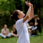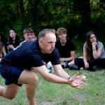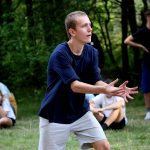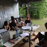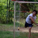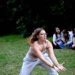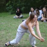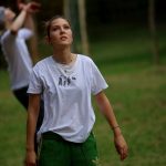 Nasz dzień rozpoczął się o godzinie 8:00. Po długim wygrzebywaniu się ze śpiworka pojawiłyśmy się na porannej zbiórce, a potem na zaprawie. Zamęczali nas tam ciężkimi ćwiczeniami, na przykład ruszaniem głową we wszystkie kierunki świata, a potem dookoła własnej osi. Zaraz po zaprawie powędrowałyśmy do łaźni umyć twarz, ząbki itd. Na śniadanie zjadłyśmy owsiankę z kawałkami jabłuszek oraz kanapki z ogórkiem. Zajęcia przedpołudniowe polegały na tym, że część uczestników zwartym krokiem powędrowała na mszę do kościoła w niedalekiej metropolii, o której każdy prawdziwy Korczakowiec wie, czyli do Świniar. A znaczna część obozu, która pozostała na miejscu , miała do wyboru medytacje pod nadzorem druha Młodego lub spacery pod opieką naszej kochanej kadry. Znacząca większość naszego zastępu wybrała medytację, dzięki której zrelaksowałyśmy się i stałyśmy się lekkie jak piórko. Na czasie wolnym cały nasz zastęp skorzystał z punktu gazowego i po chwili wszystkie zajadałyśmy nasze pyszności.