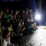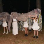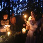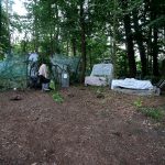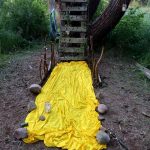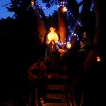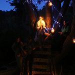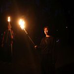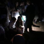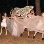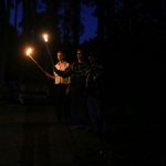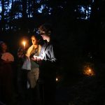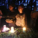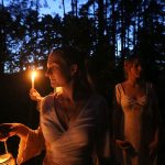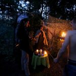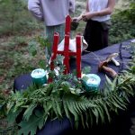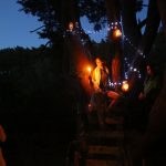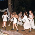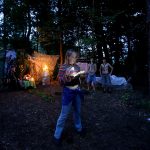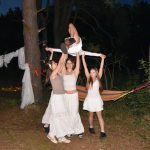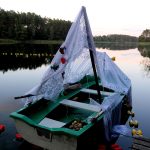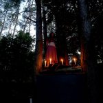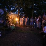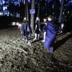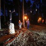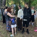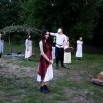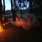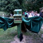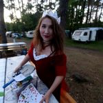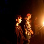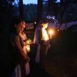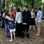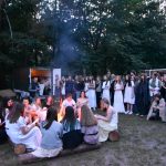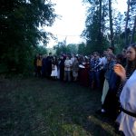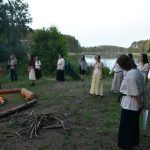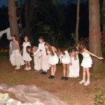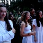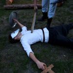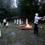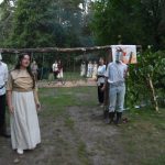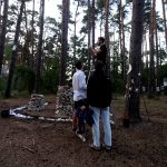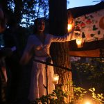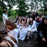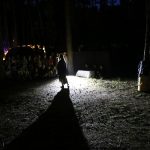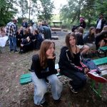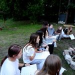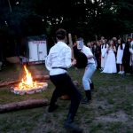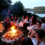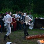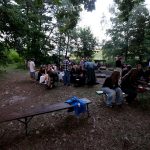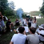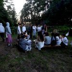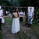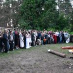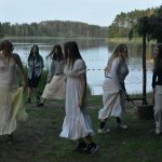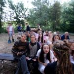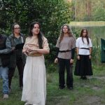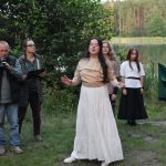 Pewnego wieczoru sprawy potoczyły się inaczej niż zwykle. Chyba mniej więcej w czasie, gdy zwykle miał być krąg, zaproszono nas na zwieńczenie prób i starań grupki zwerbowanych artystów, o których próbach słyszeliśmy już od ponad tygodnia. Mowa tu o spektaklu zrealizowanym na podstawie utworu „Missa Pagana” autorstwa Edwarda Stachury przez Korczakowców. Całość odbyła się na terenie naszego portu i placu przed Pomnikiem. Jako widownia siedzieliśmy na ławkach zwróceni twarzą do jeziora. W spektaklu, w głównych rolach, brało udział kilkanaścioro z naszych znajomych obozowiczów oraz grupka chórowa i taneczna. Nie można zapomnieć o ekipie techników od efektów z Andrzejem na czele. Samo przedstawienie robiło duże wrażenie, zarówno ekspresją, jak i przekazem. O ile dobrze zinterpretowałem to, co zobaczyłem, postacie przed nami poruszały i wytykały bardzo istotne kwestie. Bohaterowie mówili o rozpadzie wspólnoty ludzkiej, rasizmie, wojnach, uzależnieniach, głodzie i, uogólniając, o ludzkim okrucieństwie. Obwiniali się o to. Mówili o tym, że największej krzywdy człowiek może doznać od drugiego człowieka. W drugiej połowie jednak doszło do pewnej zmiany. Zaczęto mówić o możliwości życia w pokoju i bezkrwawej rzeczywistości. Pojawiły się frazy takie jak “Człowiek człowiekowi bliźnim, z bliźnim się możesz zabliźnić”. Zaśpiewano kilka pieśni, w tym Sanctus, który śpiewaliśmy razem z aktorami. Mniej więcej wtedy miejsce miała scena, która chyba wszystkim (łącznie ze mną) zapadła w pamięć najbardziej. Mianowicie – zaczęto rozdawać na widowni chleb. Zwykły chleb, jadalny i w ogóle. Wszyscy ucieszyli się bardziej, niż może by wypadało. Na koniec miało miejsce uroczyste dziękczynienie za wszystko, co mamy, po czym aktorzy zebrali się razem i zakończyli sztukę. Wrażenia po spektaklu pozostały mi bardzo dobre – fajnie wykonany i klimatycznie zaaranżowany.