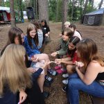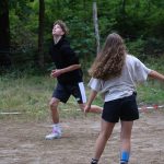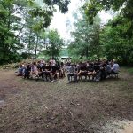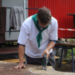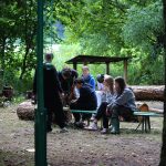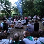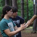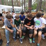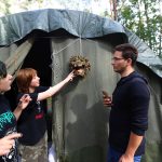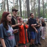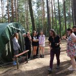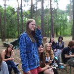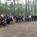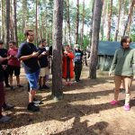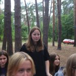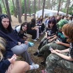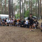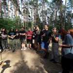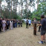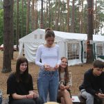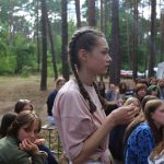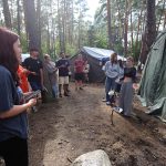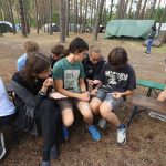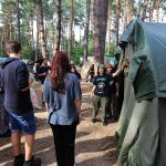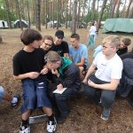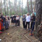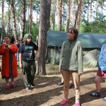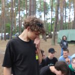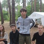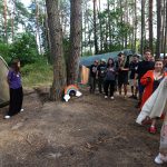 Pobudka była wczoraj bardzo wyjątkowa, ponieważ obudził nas nie kto inny, tylko sam Shrek. Według mnie dotychczas nie było lepszej pobudki na tym turnusie. Następnie czekał nas apel poranny, na którym ogłoszono warty. Nam przypadła warta nocna. Po smacznym śniadaniu robiliśmy artystyczne instalacje totemiczne – wreszcie pogoda pozwoliła. Nie były to klasyczne totemy. Najpierw losowaliśmy hasło wyrażające jakąś wartość, na przykład przyjaźń, miłość, tolerancja, wolność. Nam przypadło zwizualizować życzliwość.