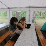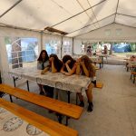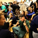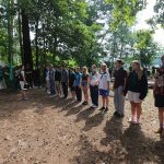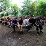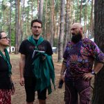 Po wczorajszym wyczerpującym dniu, pełnym emocji i stresu związanego z Korowizją, nasza najdroższa Kadra zlitowała się nam nami i pozwoliła pospać dłużej, odwołując zaprawę poranną. Wszyscy z ogromną wdzięcznością hopsali umyć zęby w rytm porannej muzyki puszczanej przez druha Andrzeja. Po zjedzeniu pysznego śniadania, przygotowanego z zapałem przez druhów Kucharzy, mieliśmy możliwość uczestniczenia kolejno w trzech różnych warsztatach. Na pierwszych omawialiśmy praktyczne sposoby radzenia sobie ze stresem, na drugich dowiedzieliśmy się jak zachować bezpieczeństwo podczas różnych sytuacji, które mogą spotkać nas na wakacjach. Na ostatnich warsztatach, prowadzonych przez druha Bogdana, mogliśmy samodzielnie zagrać na bębnach. W przerwie miedzy zajęciami zjedliśmy pyszny obiad (tudzież wege jajo). Jako że dowiedzieliśmy się o nadchodzącej burzy i ulewie od razu po przyspieszonej kolacji wskoczyliśmy w pelerynki i skocznym krokiem wyruszyliśmy do Świniar.