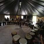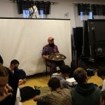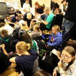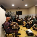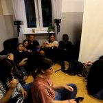 W świetlicy spędziliśmy kilka godzin. Było super! Każdy miał tylko trochę mniej miejsca niż potrzebował! Dzięki druhowi Bogdanowi przez pewien czas te niewielkie przestrzenie między nami wypełniały dźwięki wspaniałej muzyki. Zagrał nam koncert na handpanie składający się z jego autorskich utworów. Do obozu wróciliśmy około północy. Nasz zastęp został zaskoczony miłą wiadomością –