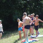 Dzień zaczął się pobudką, zaprawą poranną i apelem. Po śniadaniu mieliśmy do wyboru wycieczkę do Świniar na gry i zabawy na placu zabaw i wyprawę pieszo – kajakową. Nasz zastęp wybrał wycieczkę do Świniar. Graliśmy tam w kosza i siatkówkę. Później wróciliśmy na obiad do Korczakowa. Popołudniu były warsztaty. Szymon i ja wybraliśmy zajęcia plastyczne, gdzie malowaliśmy kamienie, patyki i szyszki. Natan, Robert i Wojtek wybrali warsztaty puszczańskie, na których robili szałas. Potem była kolacja, a na koniec dnia ognisko i Wieczór Marzeń. Wtedy puszczaliśmy łódeczki z kory i patyków, a na karteczkach pisaliśmy marzenia i je puszczaliśmy na łódeczkach na jezioro. Później skakaliśmy przez ogień. Według nas wczoraj było bardzo fajnie.