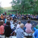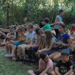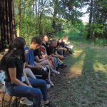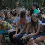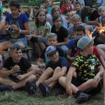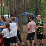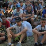 Wieczorem była Pośpiewajka i odbyły się pląsy. Później druhowie przetestowali nas na wypadek burzy czy innego zagrożenia (od kadry: próba ewakuacji). Na dźwięk syreny wszyscy musieliśmy szybko przyjść na boisko i ustawić się w dwuszeregu. Po sprawdzeniu obecności wróciliśmy do namiotów, umyliśmy zęby i poszliśmy spać.