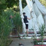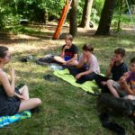 Wstaliśmy około godziny ósmej. Zostaliśmy obudzeni tylko po to, żeby wysłuchać od druha Przemka planu dnia i dowiedzieć się, że nie ma zaprawy. Pogoda była słoneczna – około 28 stopni Celsjusza. Jak w każdą niedzielę plan dnia okazał się luźniejszy i mieliśmy więcej czasu wolnego. Po zjedzeniu śniadania na szybko grupa osób poszła do Kościoła w Świniarach. Reszta – spora grupa – usiadła w kręgu i mogliśmy podyskutować o tematach wiary, wartości, dobra i zła. Osobiście nie mogę się doczekać następnej niedzieli, bo dyskusja bardzo mi się podobała.