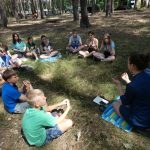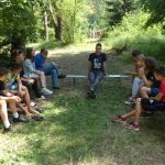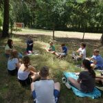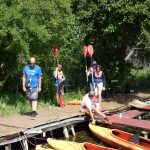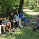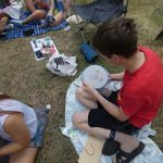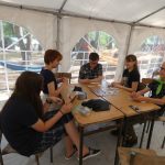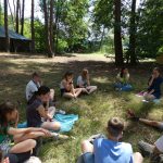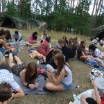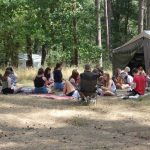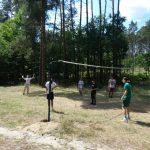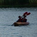 Zaraz po śniadaniu udaliśmy się na wybrane przez nas warsztaty z dh. Bosmanem i dh. Ratownikiem, na których nauczyliśmy się o kulturze osobistej podczas pracy z łódkami czy innymi statkami, żegludze i poznaliśmy części żaglówki. Po skończonej nauce teorii nauczyliśmy się jak prawidłowo załatać dziurę w łodzi oraz pływaliśmy na kajakach. Po zajęciach i czasie wolnym zabraliśmy się do obiadu, na który zaserwowano mielony z surówką i ziemniakami, a po obiedzie zaczęliśmy prace nad FPN-em – z początku szło ciężko, ale z pomocą naszej druhny daliśmy radę.