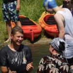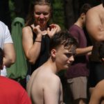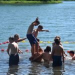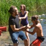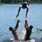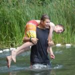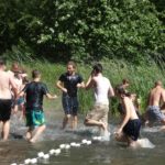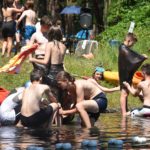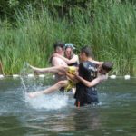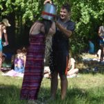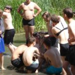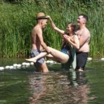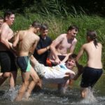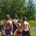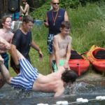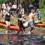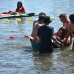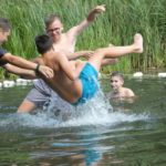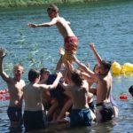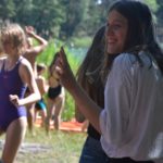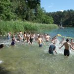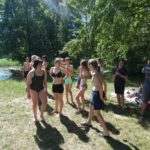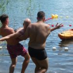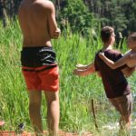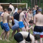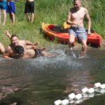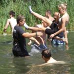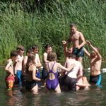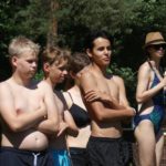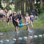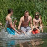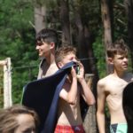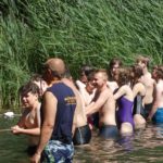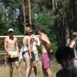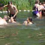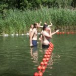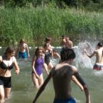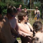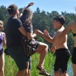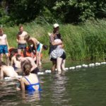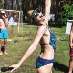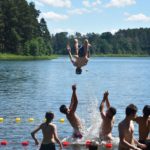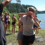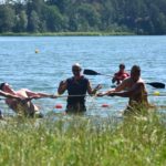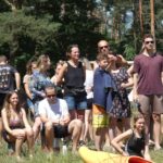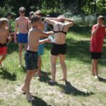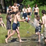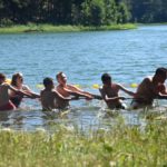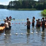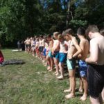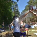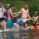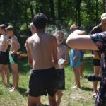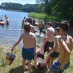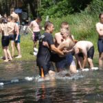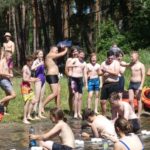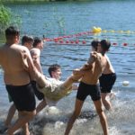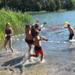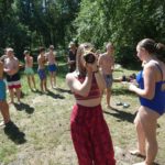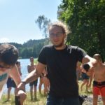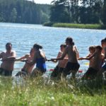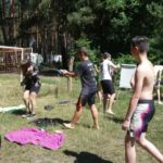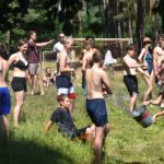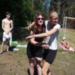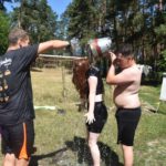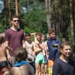 Dzień zaczęliśmy rozbudzającą zaprawą poranną. Następnie odbył się apel, podczas którego dowiedzieliśmy wszelkich szczegółów o zajęciach, które zaplanowano na ten dzień. Przed południem odbyła się Olimpiada Wodna, podczas której na kąpielisku odbywały się różne konkurencje. Dzień był upalny, więc woda lała się strumieniami z wiader i butelek na wszystkich bez wyjątku. Poza znanymi już z lat poprzednich konkurencjami braliśmy udział w nowych zadaniach, jak na przykład nawigowanie za pomocą komend kajakarza płynącego z zawiązanymi oczami. Okazało się to bardzo trudne, a Maciek wylądował w trzcinach. Śmiechu było mnóstwo. Wszyscy świetnie się bawili, a gdy olimpiada dobiegła końca rozpoczął się czas wolny, podczas którego uczestnicy mieli okazję się zrelaksować i przyjemnie spędzić czas. Następnymi zajęciami były przygotowania do Bajkolandii, podczas których wszystkie zastępy rozpoczęły planowanie swoich występów, które nazajutrz miały ujrzeć światło dzienne. Wieczór spędziliśmy- jak każdy inny – śpiewając i pląsając wspólnie