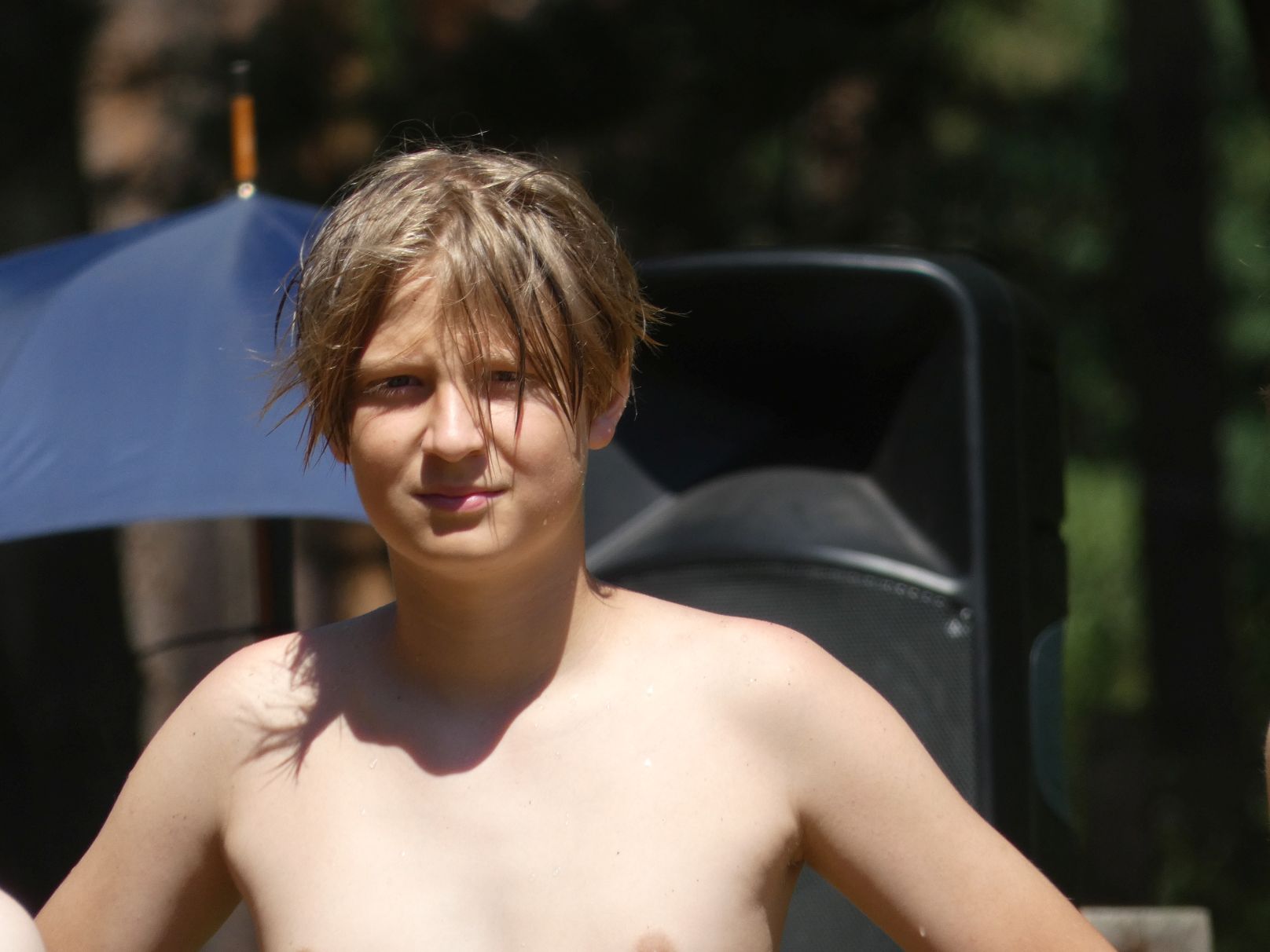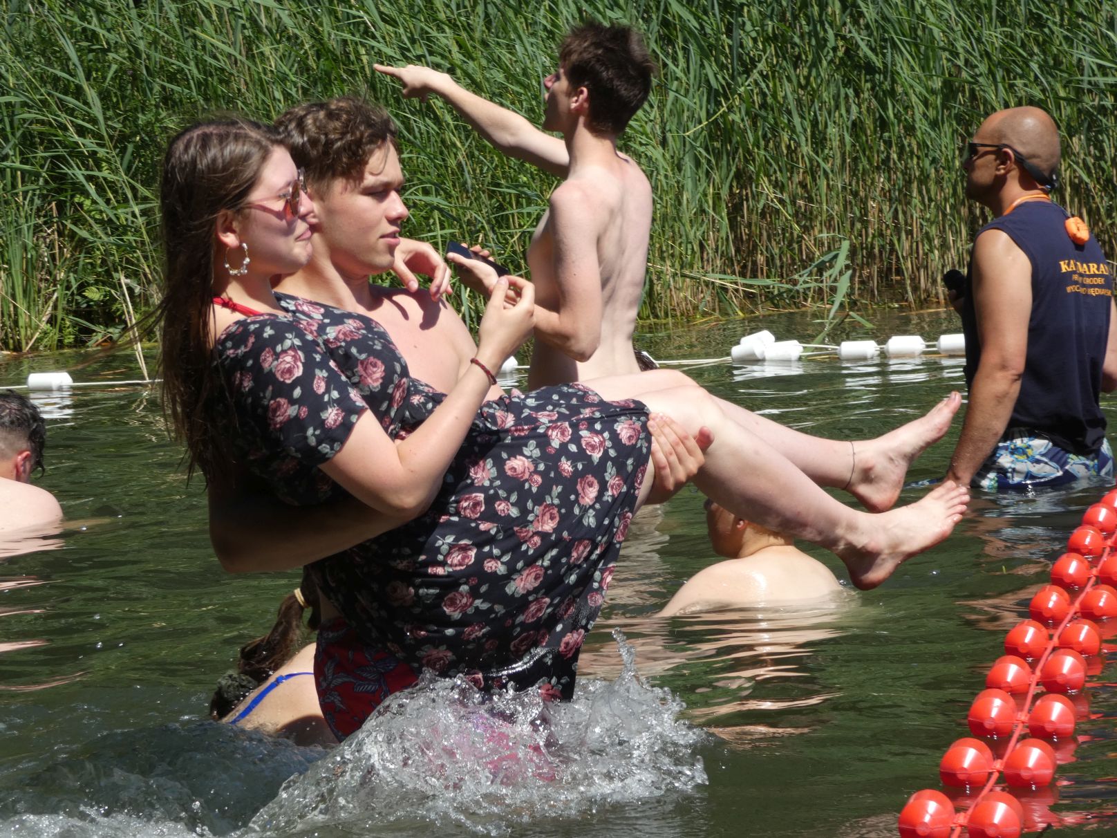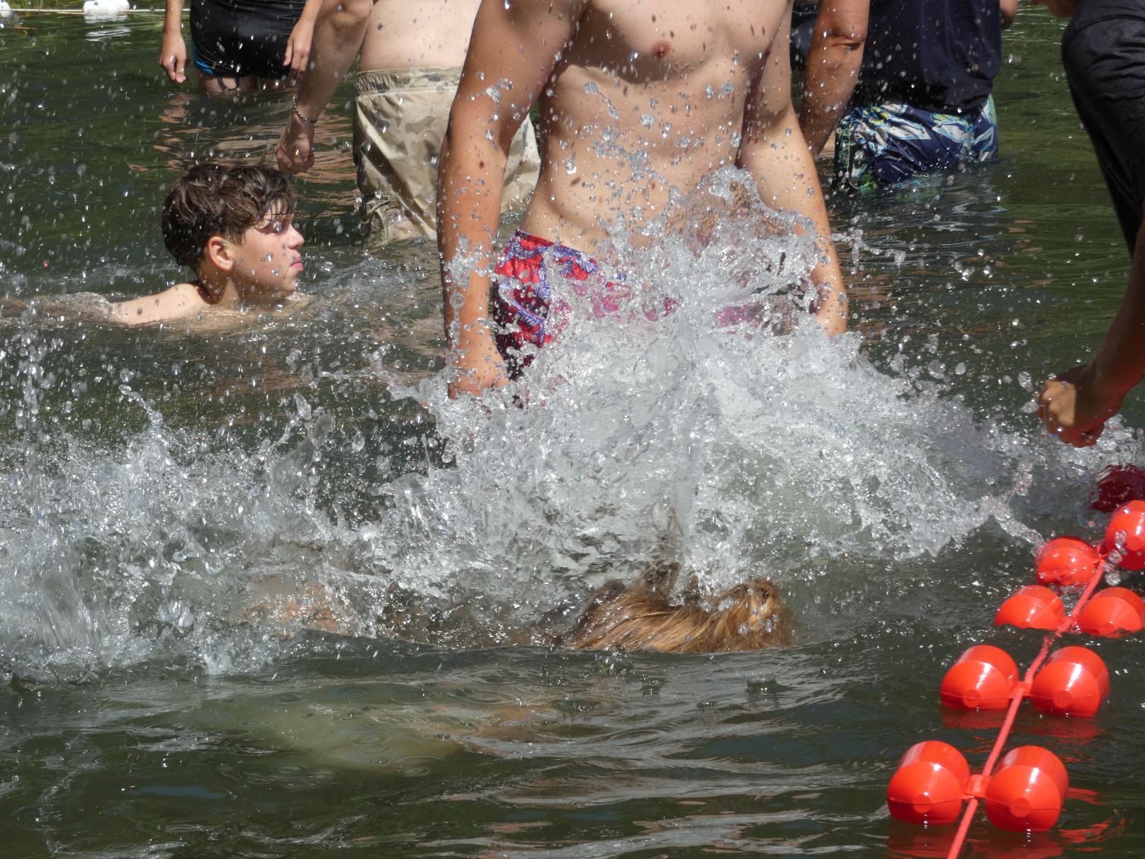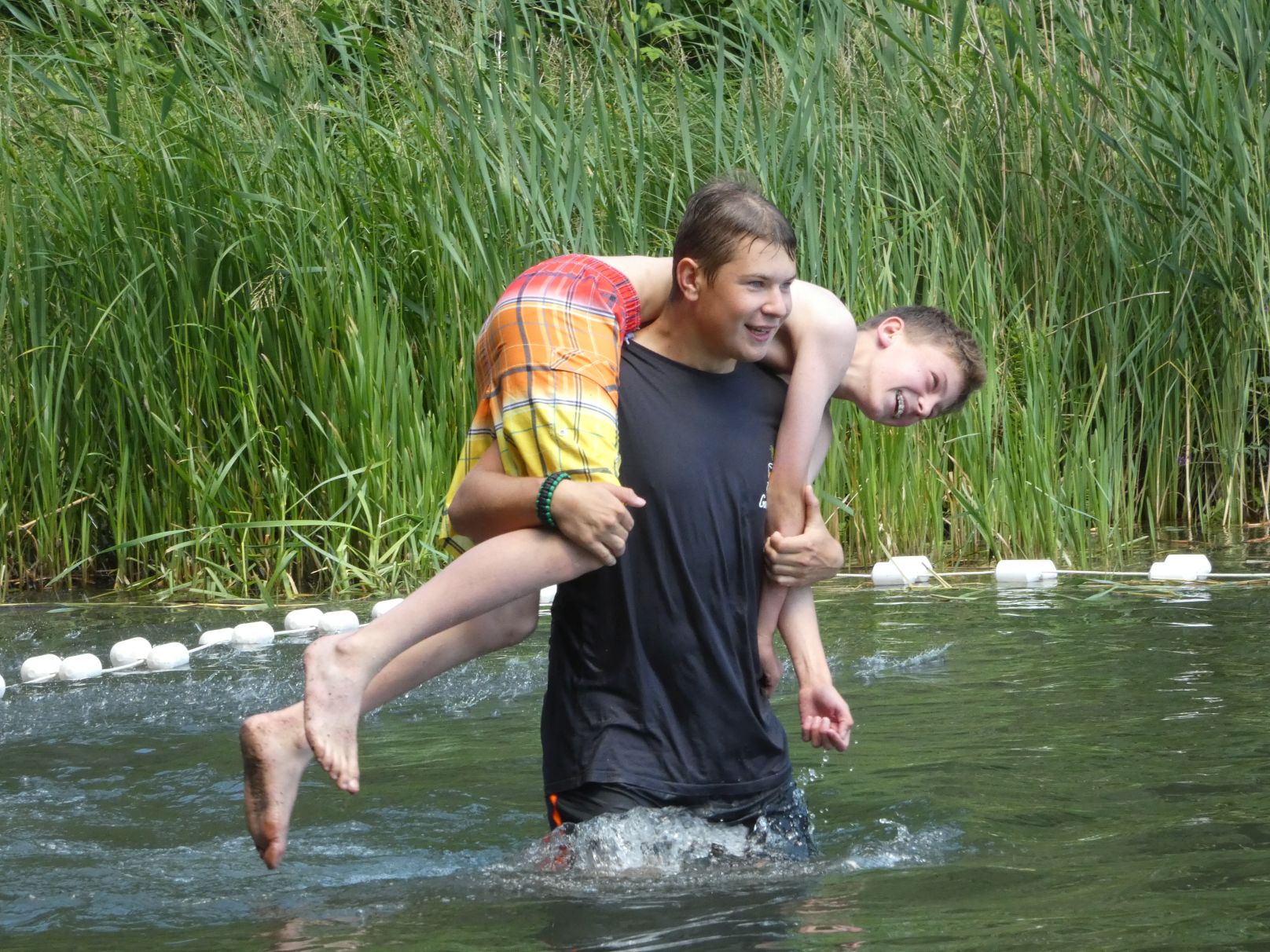 Dzień zaczęliśmy rozbudzającą zaprawą poranną. Następnie odbył się apel, podczas którego dowiedzieliśmy wszelkich szczegółów o zajęciach, które zaplanowano na ten dzień. Przed południem odbyła się Olimpiada Wodna, podczas której na kąpielisku odbywały się różne konkurencje. Dzień był upalny, więc woda lała się strumieniami z wiader i butelek na wszystkich bez wyjątku. Poza znanymi już z lat poprzednich konkurencjami braliśmy udział w nowych zadaniach, jak na przykład nawigowanie za pomocą komend kajakarza płynącego z zawiązanymi oczami. Okazało się to bardzo trudne, a Maciek wylądował w trzcinach. Śmiechu było mnóstwo. Wszyscy świetnie się bawili, a gdy olimpiada dobiegła końca rozpoczął się czas wolny, podczas którego uczestnicy mieli okazję się zrelaksować i przyjemnie spędzić czas. Następnymi zajęciami były przygotowania do Bajkolandii, podczas których wszystkie zastępy rozpoczęły planowanie swoich występów, które nazajutrz miały ujrzeć światło dzienne. Wieczór spędziliśmy- jak każdy inny – śpiewając i pląsając wspólnie