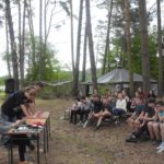 Wczorajszy dzień zaczął się dosyć zwyczajnie – jedyna różnica to brak zaprawy porannej. Przed południem była błyskawica – czas, gdzie każdemu zastępowi przydziela się miejsce, które ma posprzątać. Trochę mieliśmy bałagan po przygotowaniach do Wierszolandii (wersja Bajkolandii, gdzie zamiast miejsca dostajemy wiersze jako inspirację do wymyślenia bajki). Następnie rozpoczął się Turniej Filmowy. Musieliśmy zgadywać tytuł filmu, autora i tytuł utworu na podstawie fragmentu soundtracku – nie było łatwo, mimo to myślę, że wszyscy