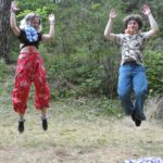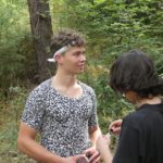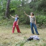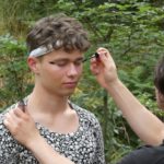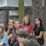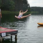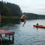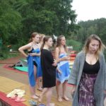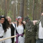 Po południu przyszedł czas na atrakcje dnia – podchody! Zostały one przygotowane przez uczestników. Podzielono nas na 5 grup, każda miała za zadanie wykonanie zadań przy 9 punktach poza obozem, gdzie było się trudno dostać (np. wielka góra Olimp). Wymagało to poświęcenia – biegania przez trawy i krzaki, kiedy cały czas do butów wpadają jakieś kolce. Przy każdym punkcie czekała osoba przebrana za jakąś postać z filmów (Piraci z Karaibów, Ojciec Chrzestny, Alicja w Krainie Czarów, Miasto 44, Mean Girls, Mamma Mia, Sherlock Holmes…). Kostiumy były cudowne i (jak na korczakowskie warunki) bardzo dobrze odwzorowywały dane postacie. Pierwsi, którzy wrócili do obozu, otrzymali nagrodę w postaci skoku do wody z pomostu w Porcie (a to wielkie wyróżnienie, chociaż ja z pomostu skakać nie lubię). Na koniec dnia kolacja, oczywiście ognisko, a następnie drugi program – koncert w Korzonku druha Bartka.
