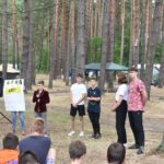 Wczorajszy dzień zaczął się jak zwykle – pobudka, zaprawa, apel, śniadanie. Przed południem cały obóz zebrał się, aby wysłuchać kampanii wyborczych kandydatów na komendanta obozu w dniu samozarządzania. Dzień ten będzie polegał na tym, że zastępowi na jeden dzień przejmą przywileje i obowiązki druhów a przedstawiciel, który wygra zostanie “komendantem” obozu. Druhowie będą się tylko przyglądać z daleka, abyśmy się nie pozabijali 🙂. Głosować można było na: Stowarzyszenie BAT (Batman i Helenka), Kaja i Maciek oraz Pchełka i Dymitr. Następnie był czas na reklamowanie swoich partii: rozdawanie ulotek, wieszanie plakatów a nawet reklamy radiowe. Potem nastąpiła pełna oczekiwania cisza wyborcza, a po niej głosowanie. Gdy kadra podliczyła głosy wyłonili zwycięzcę: Kaje i Maćka! Bardzo im gratuluje, bo mieli dobrą mowę i żadne pytanie nie sprawiło im problemu. Nie mogę się doczekać zaplanowanego przez nich balu o tematyce “Piekło vs Niebo”.