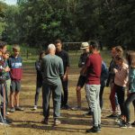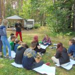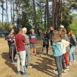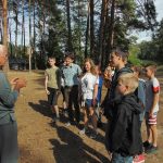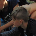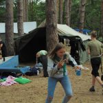 Po ciszy poobiedniej zebraliśmy się wszyscy na boisku i druhowie podzielili nas na 8 grup, by zacząć bieg po Korczakowie, gdzie dowiadywaliśmy się różnych rzeczy o Korczaku. Każda grupa rozpoczynała grę na innej stacji. Naszą pierwszą stacją było boisko, gdzie dh Avi przedstawił nam gry i zabawy dzieci z czasów Korczaka. Druga stacja to druh Kuba, gdzie rozmawialiśmy o tym, że z druhami można dzielić się wszystkimi problemami. Następnie przeszliśmy do świetlicy, a tam druhna Gazela mówiła o „korpacie” w sierocińcach Korczaka, o tradycji pocztówek, a później tworzyliśmy pocztówki dla wylosowanych tajemniczych przyjaciół. Kolejnym punktem była stołówka, gdzie u druhny Oliwki losowaliśmy tematy, pisaliśmy do tego argumenty za i przeciw, a następnie artykuły do Małego Przeglądu. Kolejna stacja to plac przed Pomnikiem u druhny Menelek. Ponieważ zaczęło strasznie lać, schowaliśmy się do świetlicy i tam wykonaliśmy zadanie: dopasowanie różnych informacji do postaci Szefa i Korczaka. Później poszliśmy do druha Rucia do magazynku i tam układaliśmy cytaty z tekstów Korczaka pociętych na fragmenty. Potem poszliśmy do Cyrku, gdzie druhna Hania opowiadała o sądzie u Korczaka i odgrywaliśmy sceny z rozpraw. Ostatnią stacją było radio, gdzie razem z druhną Polą wypisaliśmy plusy i minusy Księgi Dziękuję – Przepraszam. Później narysowaliśmy nasz własny totem z podpisami całej grupy. Gdy szliśmy odpocząć po biegu zobaczyliśmy, że druhowie rozwiesili hamaki, które niestety były mokre od deszczu. Jak wyschły, od razu poszliśmy na nich odpoczywać. Potem była kolacja i przygotowania do ogniska.
