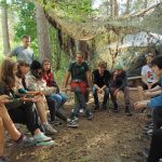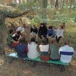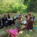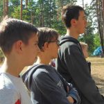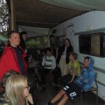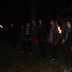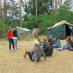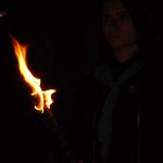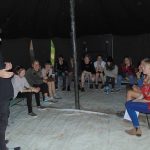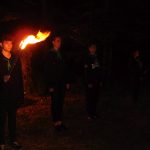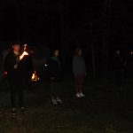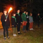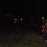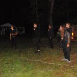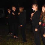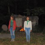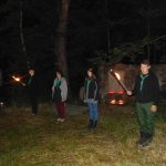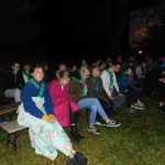 Po godzinie 21 odbyły się zbiórki i zaczęliśmy śpiewać piosenki przy ognisku. Następnie, kiedy się ściemniło, przeszliśmy pod pomnik Korczaka. Było tam dużo ławek, więc usiedliśmy i obejrzeliśmy przedstawienie, które przygotowała druhna Oliwia z grupą teatralną. Potem był krąg i druhna komendantka wręczyła chusty gościom z Izraela. Po wręczeniu chust złapaliśmy się za ręce i podaliśmy sobie Iskierkę. Następnie Ci, którzy chcieli odbyć wartę przy Pomniku, czekali przy ognisku na swoją kolej, pozostali poszli spać.