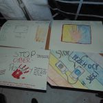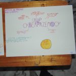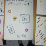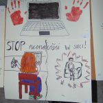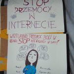 Wczorajsza pobudka wyrwała nas ze snu później niż zwykle, nie było zaprawy porannej, więc dzień zaczęliśmy apelem oraz śniadaniem. Potem mieliśmy czas na robienie plakatów lub nagrywanie reklamy na temat „Wirtualna przemoc boli w realu. Stop nienawiści w sieci!” Mieliśmy czas na robienie tych  prac do godziny 16.00. Prace plastyczne wykonywaliśmy w stołówce lub w świetlicy. W międzyczasie zjedliśmy przepyszny obiadek. Później przyjechali do nas ekolodzy, którzy zrobili warsztaty o zmianie klimatu Ziemi. Na początku mieliśmy prezentację na ten temat, następnie podzielili nas na cztery grupy i opowiadali, czym się zajmują.