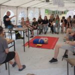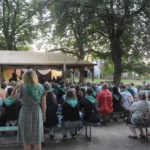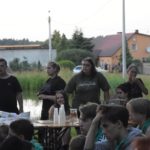 Dzień zaczął się zwyczajnie, a jednak nie, bo nie było zaprawy porannej. Hip, hip, hura! Dalszy początek dnia był już zwykły – oczywiście apel poranny i śniadanie. Po pysznym posiłku mieliśmy trochę czasu na posprzątanie namiotów. Przyszedł czas na pierwsze zajęcia, które prowadziła straż pożarna. Zostaliśmy podzieleni na dwie grupy. Jedna słuchała opowieści o ratownictwie, druga oglądała sprzęt w wozie strażackim i na odwrót. Na czasie wolnym trochę padało, więc większość osób spędziła czas w namiocie. Był to idealny czas na rozmowy ze znajomymi lub drzemkę. Nadszedł czas na obiad, na który podano zupę ogórkową i kaszę z warzywami. Cisza poobiednia minęła całkiem szybko. Podwieczorek był wspaniały – dostaliśmy długo wyczekiwane lody! Popołudniu zorganizowano prace w grupach. Do wyboru mieliśmy origami z druhem Alexem, Mafia prowadzona przez Jacka, bańki mydlane z druhem Przemkiem, gry planszowe z Kacprem oraz zajęcia z druhem Ratownikiem. Czas wolny po zajęciach był dość krótki, ponieważ mieliśmy przyspieszoną kolację. Po posiłku udaliśmy się do Świniar, gdzie zostaliśmy miło powitani. Mieszkańcy zorganizowali grilla, a my – Korczakowcy – koncert. Nasz Korczakowski Zespół Reprezentacyjny dał czadu na scenie. Było wiele wspaniałych utworów, ale nam najbardziej do gustu przypadło Ogniobranie, wykonane przez wszystkich uczestników na zakończenie. Znalazł się też jeden ochotnik ze Świniar, który urozmaicił ten wieczór swoim śpiewem. Przed samym powrotem stworzyliśmy krąg z mieszkańcami wsi oraz podpisaliśmy się na plakacie upamiętniającym to spotkanie. Gdy wracaliśmy niebo miało piękny różowy kolor i każdy robił zdjęcia. Po dotarciu do obozu w Korzonku odbył się koncert dla chętnych, a pozostałych obowiązywała cisza nocna.
