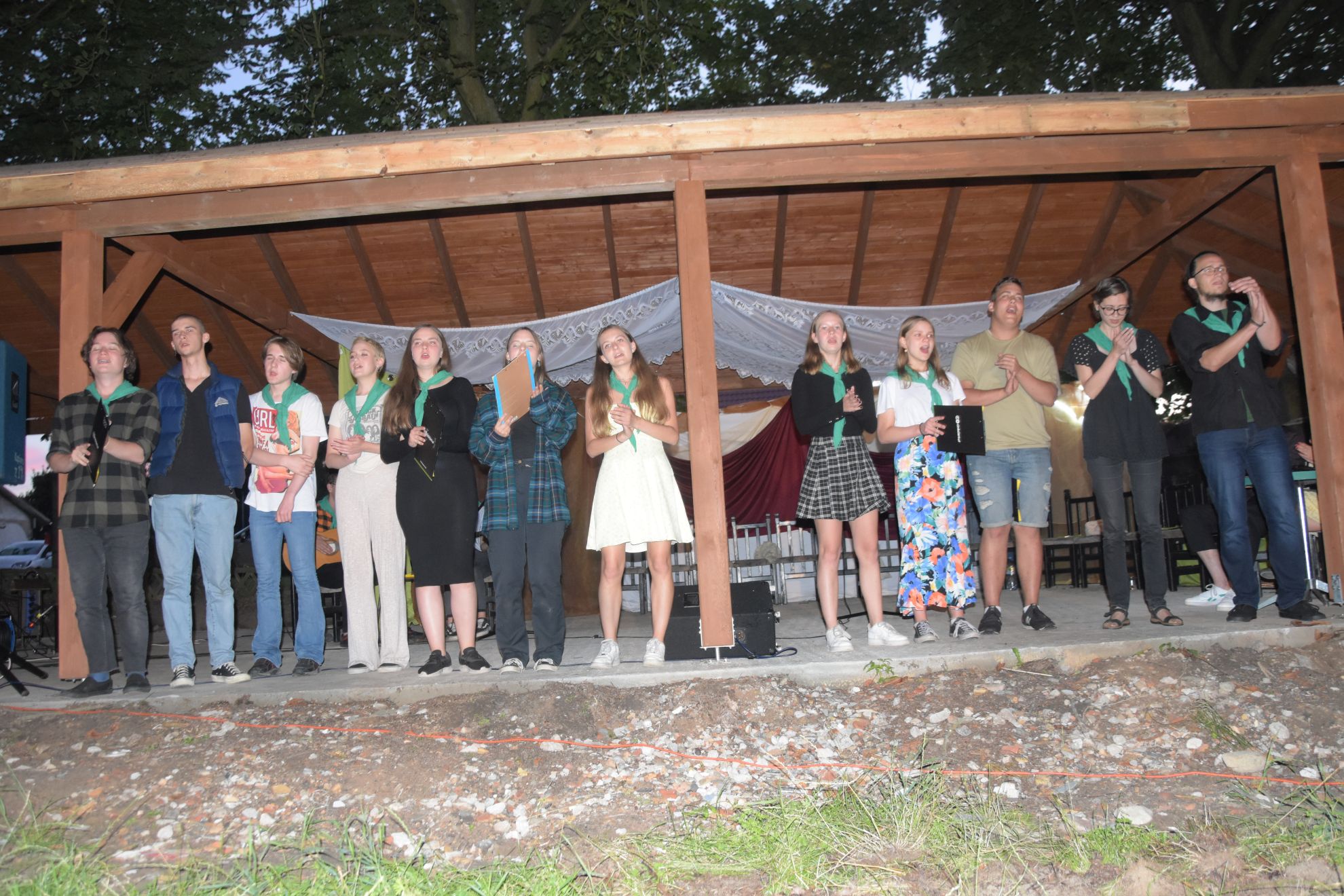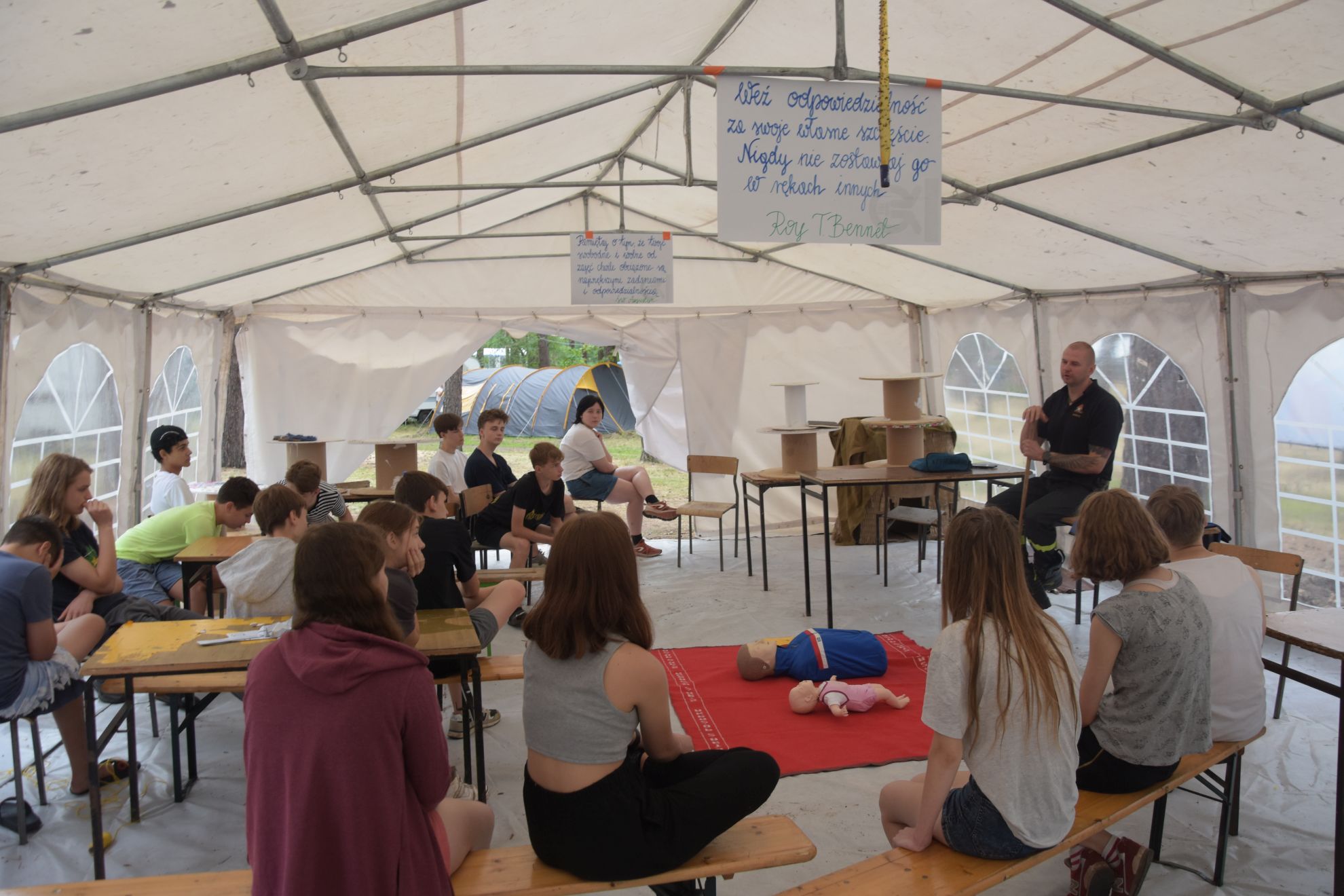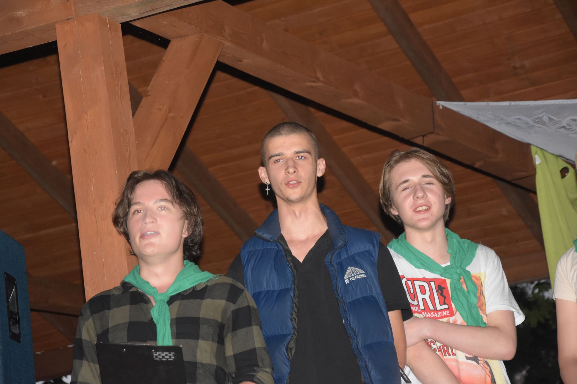 Dzień zaczął się zwyczajnie, a jednak nie, bo nie było zaprawy porannej. Hip, hip, hura! Dalszy początek dnia był już zwykły – oczywiście apel poranny i śniadanie. Po pysznym posiłku mieliśmy trochę czasu na posprzątanie namiotów. Przyszedł czas na pierwsze zajęcia, które prowadziła straż pożarna. Zostaliśmy podzieleni na dwie grupy. Jedna słuchała opowieści o ratownictwie, druga oglądała sprzęt w wozie strażackim i na odwrót. Na czasie wolnym trochę padało, więc większość osób spędziła czas w namiocie. Był to idealny czas na rozmowy ze znajomymi lub drzemkę. Nadszedł czas na obiad, na który podano zupę ogórkową i kaszę z warzywami. Cisza poobiednia minęła całkiem szybko. Podwieczorek był wspaniały – dostaliśmy długo wyczekiwane lody! Popołudniu zorganizowano prace w grupach. Do wyboru mieliśmy origami z druhem Alexem, Mafia prowadzona przez Jacka, bańki mydlane z druhem Przemkiem, gry planszowe z Kacprem oraz zajęcia z druhem Ratownikiem. Czas wolny po zajęciach był dość krótki, ponieważ mieliśmy przyspieszoną kolację. Po posiłku udaliśmy się do Świniar, gdzie zostaliśmy miło powitani. Mieszkańcy zorganizowali grilla, a my – Korczakowcy – koncert. Nasz Korczakowski Zespół Reprezentacyjny dał czadu na scenie. Było wiele wspaniałych utworów, ale nam najbardziej do gustu przypadło Ogniobranie, wykonane przez wszystkich uczestników na zakończenie. Znalazł się też jeden ochotnik ze Świniar, który urozmaicił ten wieczór swoim śpiewem. Przed samym powrotem stworzyliśmy krąg z mieszkańcami wsi oraz podpisaliśmy się na plakacie upamiętniającym to spotkanie. Gdy wracaliśmy niebo miało piękny różowy kolor i każdy robił zdjęcia. Po dotarciu do obozu w Korzonku odbył się koncert dla chętnych, a pozostałych obowiązywała cisza nocna.