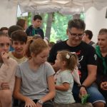 Wczoraj rozpoczęliśmy dzień jak zwykle od pysznego śniadania. Od razu po posiłku graliśmy w świetlicy w kalambury. Po tej zabawie zastępy zaczęły się przygotowywać do Festiwalu Piosenki Naszej, który odbywał się wieczorem. Próby i aranżowanie a w krytycznych przypadkach dopisywanie tekstu zajęło uczestnikom całą ciszę poobiednią, popołudnie i wieczór. W przygotowaniach od strony muzycznej i organizacyjnej prym wiedli Korwydzy, którzy ze swoim nieskończonym zapasem energii pomagali nam, wspierali, pocieszali i motywowali przez cały dzień.