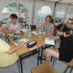 Po oczywiście dobrym obiadku i przerwie poobiedniej każdy uczestnik obozu dostał możliwość wzięcia udziału w warsztatach. Do wyboru były między innymi warsztaty z robótek ręcznych, plastyczne, traperskie, żeglarskie, a nawet takie, gdzie tylko się gadało albo odwrotnie – gadać nie było można. Po 2 godzinach wszyscy byli tak zmęczeni, że dostali wolny czas dla siebie do kolacji.