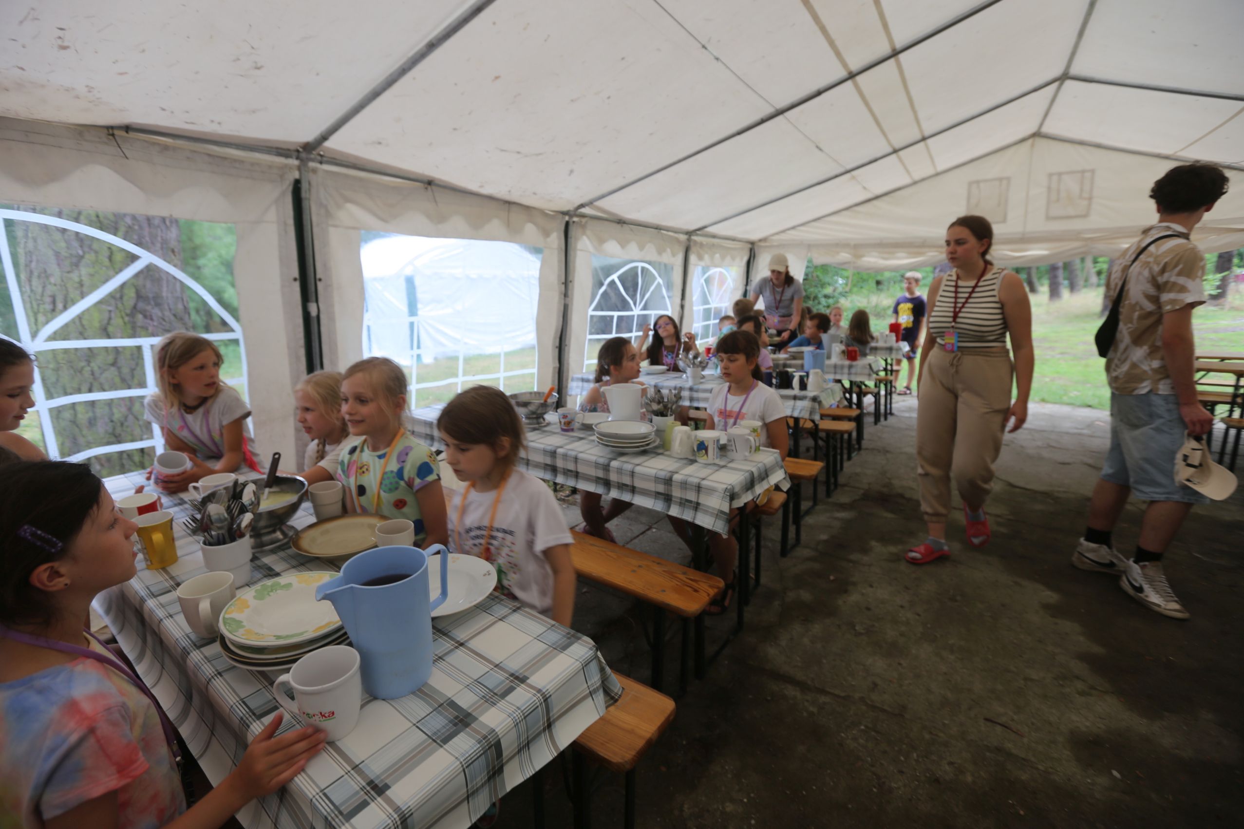 Wczoraj przyjechałyśmy do Korczakowa. Każdy dostał identyfikator z imieniem, aby łatwiej było nam się poznawać. Komendantka podobozu przydzieliła nas do jednego namiotu i od razu się polubiłyśmy. Przeszłyśmy się po obozie, rozpakowałyśmy walizki, a potem przyszedł czas na obiad. Po obiedzie trochę odpoczęłyśmy i kontynuowałyśmy zapoznawanie. Następnie wyruszyłyśmy na dalsze zwiedzanie Korczakowa, na którym druhowie opowiedzieli nam o każdym miejscu na terenie obozu. Po wycieczce był czas wolny, na którym całym zastępem z radością udałyśmy się na kąpielisko. Wykąpane poszłyśmy na pyszną kolację, po której nastąpiło uroczyste otwarcie obozu. Zaczęło się od Pośpiewajki w Cyrku, na której uczyłyśmy się korczakowskich piosenek. Później chodziłyśmy po obozie i razem z innymi uczestnikami szukaliśmy wspólnie druhów, którzy wcielili się w różne emocje, takie jak radość, strach, smutek i złość. Byli ciekawie poprzebierani i pomagali nam znaleźć chusty i pochodnie, potrzebne do rozpoczęcia obozu. Gdy już wszystko było gotowe ustawiłyśmy się w kręgu i druh komendant rozdał nam nasze pierwsze korczakowskie chusty. Było to bardzo ekscytujące przeżycie! Po całym dniu poszłyśmy umyć zęby i wróciliśmy do namiotu, w którym druhna do zaśnięcia czytała nam książkę o kocie Philo. To był długi dzień!