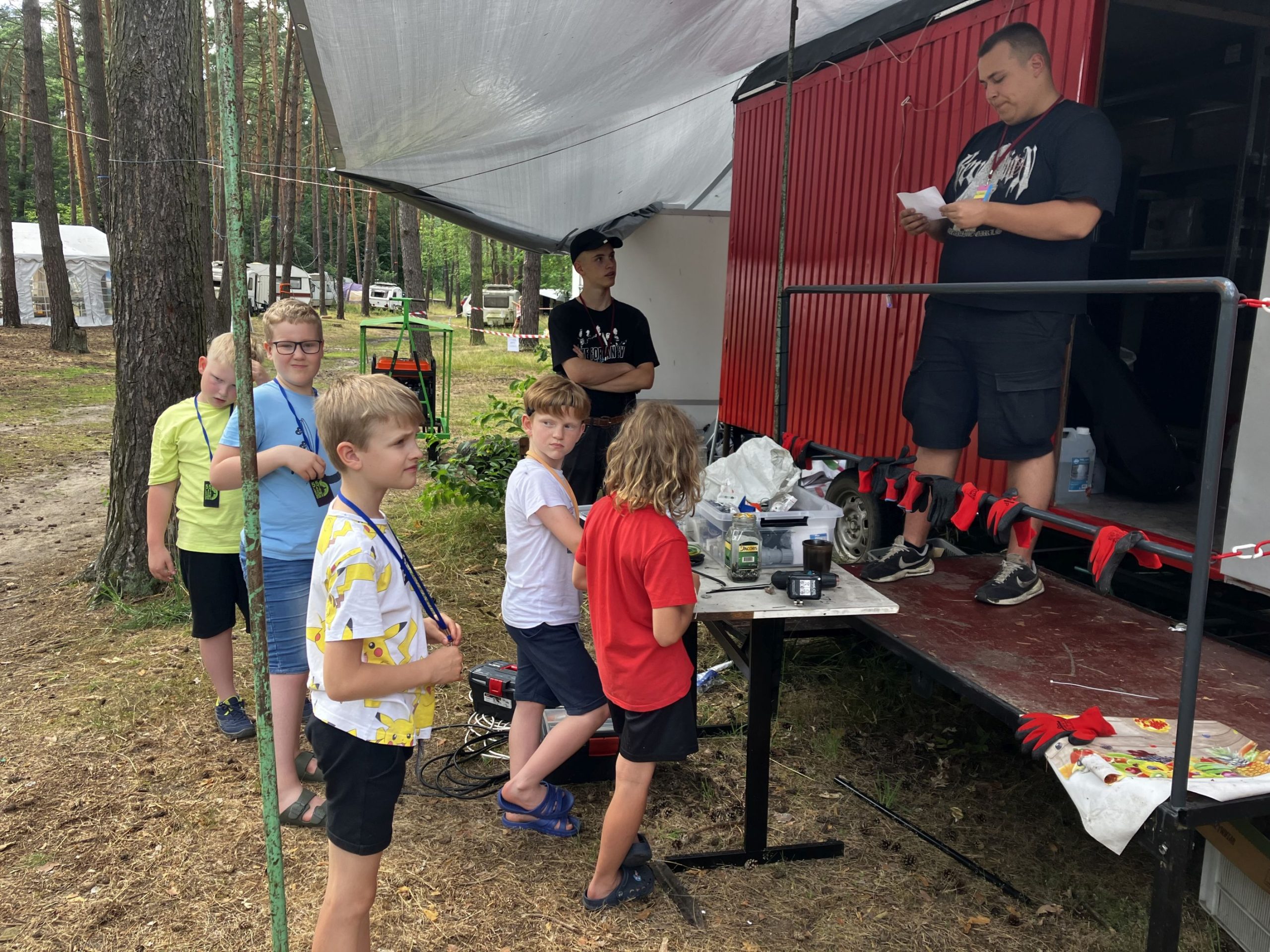 Pierwszego dnia najbardziej mi się podobało, kiedy chodziliśmy po całym terenie obozu i poznawaliśmy zasady, regulaminy, ważne miejsca. Najfajniej dla mnie było na plaży na punkcie z druhem Ratownikiem. No i podobała mi się kąpiel w jeziorze i gra w tenisa stołowego.