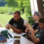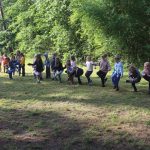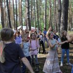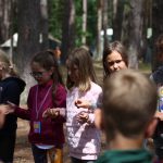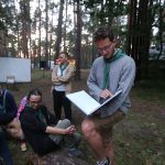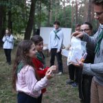 Wczoraj mieliśmy warsztaty muzyczne i rytmiczne. Rytmika to połączenie muzyki i tańca, a na tych zajęciach właśnie śpiewaliśmy, tańczyliśmy i graliśmy kilka piosenek. Uczyliśmy się wszyscy razem, ale ja jeszcze zgłosiłam się do tańców. To nie były zwyczajne tańce3, bo pokazywaliśmy tekst piosenki za pomocą języka migowego. To było super doświadczenie. Wczoraj również na porannym apelu razem z moją przyjaciółką wciągałyśmy flagę za to, że dodatkowo pisałyśmy teksty do Małego Przeglądu. Także za to dostałyśmy korpozytywki. Są to takie mini pocztówki, które świadczą o tym, że zrobiłeś coś pozytywnego. Wieczorem druhowie rozdali nagrody osobom, które zasłużyły za pracę na całym turnusie. Lila i ja dostałyśmy długopis, ołówek, notes ze zdrapywankami – gdy patykiem drapiesz czarną stronę, robi się kolorowa.