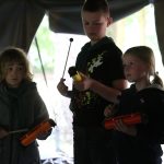 Wczoraj były warsztaty muzyczne. Wstałam o 4.30 i chyba potem musiałam czekać do pobudki. Było nudno… Potem był apel. Wciągałam flagę korczakowska razem z moją przyjaciółka Ula za pisanie do Małego Przeglądu codziennie. Później mieliśmy warsztaty, na których uczyliśmy się śpiewać , tańczyć, grać na różnych instrumentach. Ja wybrałam sekcję śpiewu, bo w ciągu roku chodzę na lekcje śpiewu. Śpiewaliśmy piosenki o prawach dziecka, o wdzięczności i piosenkę, która nosi tytuł Dłonie. Moje przyjaciółki tańczyły z patykami i śpiewały językiem migowym. Wieczorem Ula i ja dostałyśmy za pisanie nieobowiązkowych tekstów do Małego :Przeglądu nagrody: długopisy, notesy ze zdrapywanką, ołówki i mamby. Ja dostałam truskawkową, a Ula pomarańczową. Podczas obozu zdałam także na kartę pływacką. To było łatwe. Trzeba było przepłynąć kilka długości w jeziorze, przepłynąć pod wodą 5 metrów, zanurkować na 1 metr i skoczyć z pomostu na bombę.