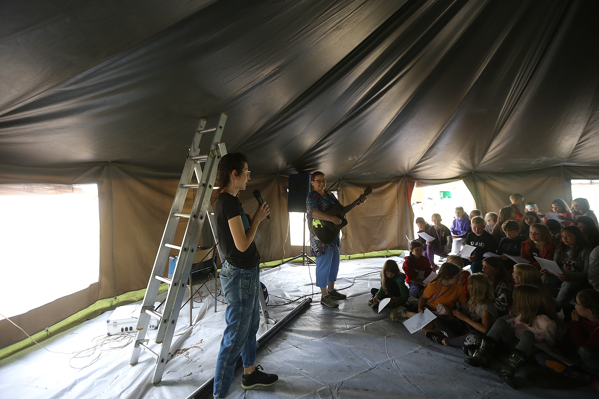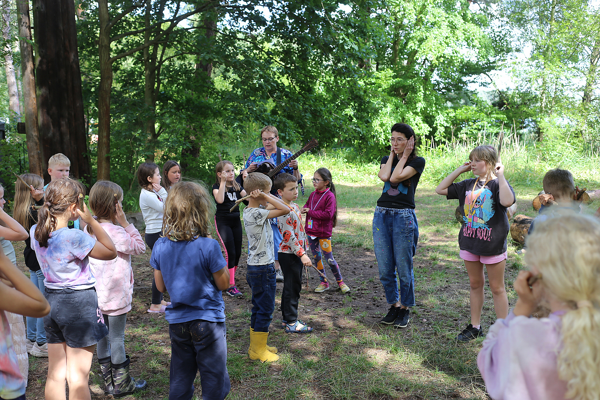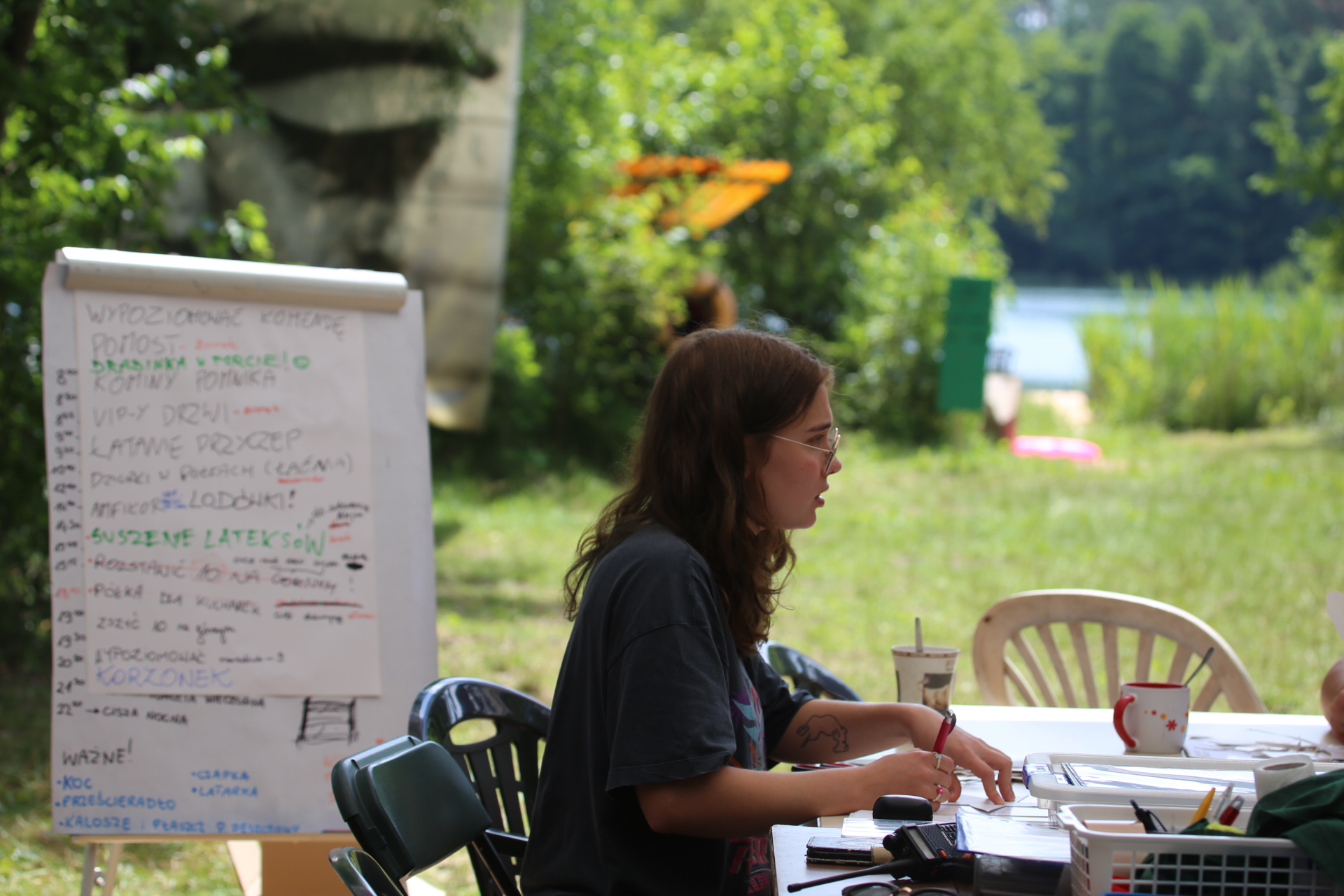 Wczoraj mieliśmy warsztaty muzyczne i rytmiczne. Rytmika to połączenie muzyki i tańca, a na tych zajęciach właśnie śpiewaliśmy, tańczyliśmy i graliśmy kilka piosenek. Uczyliśmy się wszyscy razem, ale ja jeszcze zgłosiłam się do tańców. To nie były zwyczajne tańce3, bo pokazywaliśmy tekst piosenki za pomocą języka migowego. To było super doświadczenie. Wczoraj również na porannym apelu razem z moją przyjaciółką wciągałyśmy flagę za to, że dodatkowo pisałyśmy teksty do Małego Przeglądu. Także za to dostałyśmy korpozytywki. Są to takie mini pocztówki, które świadczą o tym, że zrobiłeś coś pozytywnego. Wieczorem druhowie rozdali nagrody osobom, które zasłużyły za pracę na całym turnusie. Lila i ja dostałyśmy długopis, ołówek, notes ze zdrapywankami – gdy patykiem drapiesz czarną stronę, robi się kolorowa.