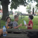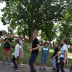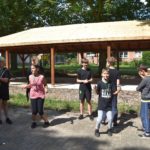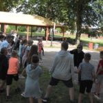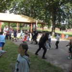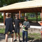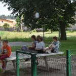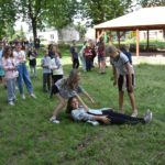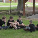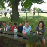 Około godziny 10-tej usłyszeliśmy alarm ewakuacyjny. Poszliśmy szybko na boisko, a następnie do Świniar, gdzie mamy świetlicę w razie niebezpieczeństwa. Dotarcie tam zajęło nam około 23 minut. Przy okazji mogliśmy pobawić się na placu zabaw i na boisku do koszykówki. Po powrocie korzystaliśmy z portu i kąpieliska. Popołudniu robiliśmy totemy. Nasz totem to mininamiot z miniludkiem, drzewkami, koszem na śmieci i toaletą.