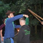 Wieczorem, na oficjalne otwarcie obozu, odbyło się pirackie przedstawienie, przygotowane przez kadrę. Musieliśmy pokonać tor przeszkód, a wszyscy druhowie się wygłupiali. Każdy, kto go przeszedł, dostawał korczakowską, zieloną chustę. Pochodniami piratów zapaliliśmy ognisko. Śpiewaliśmy i pląsaliśmy dłuższy czas, a potem, po kręgu, poszliśmy umyć zęby i spać. W czasie tego dnia wszyscy poznaliśmy dużo nowych osób.