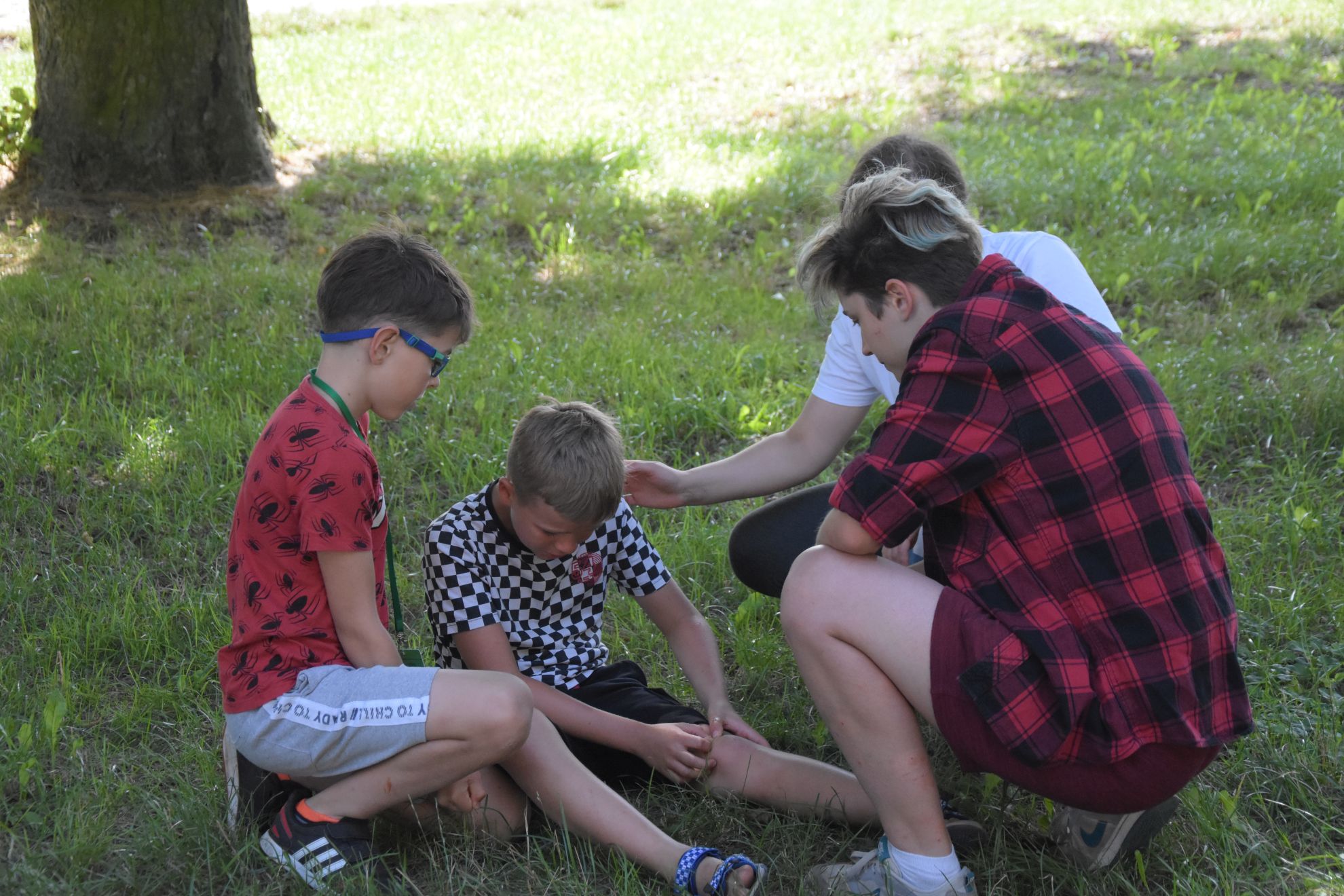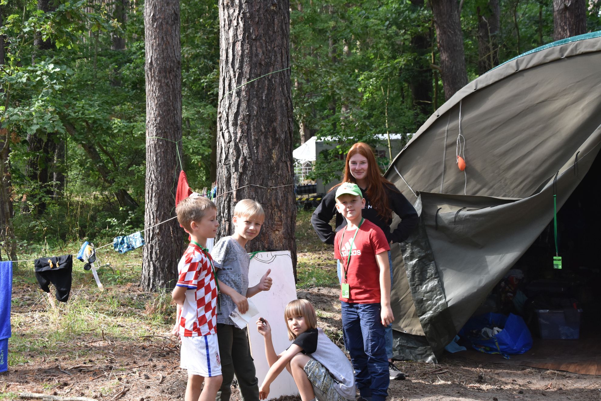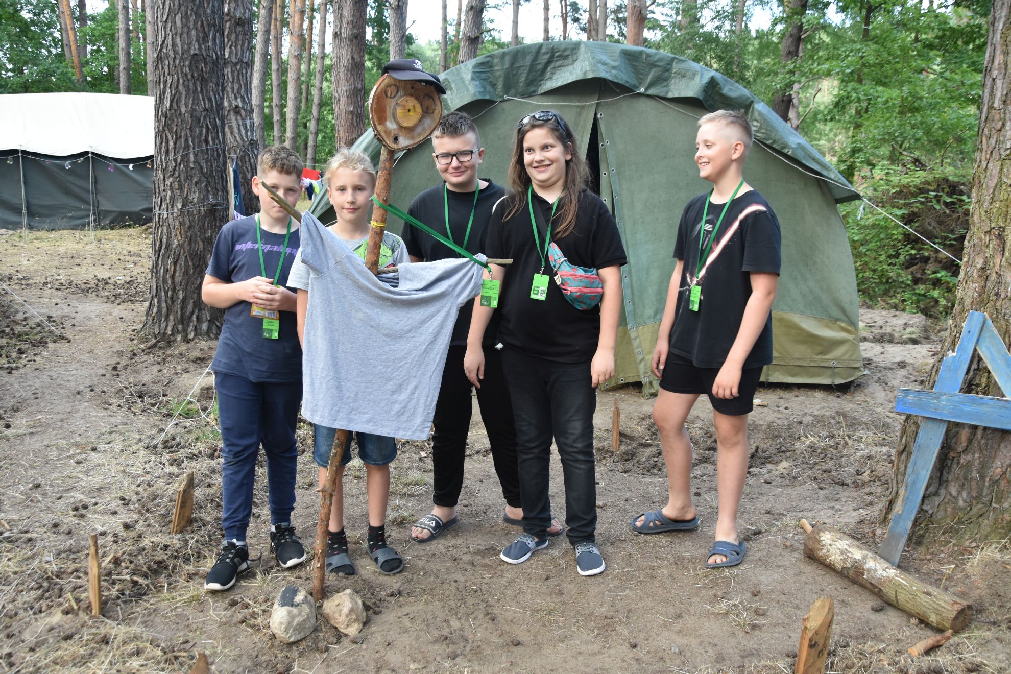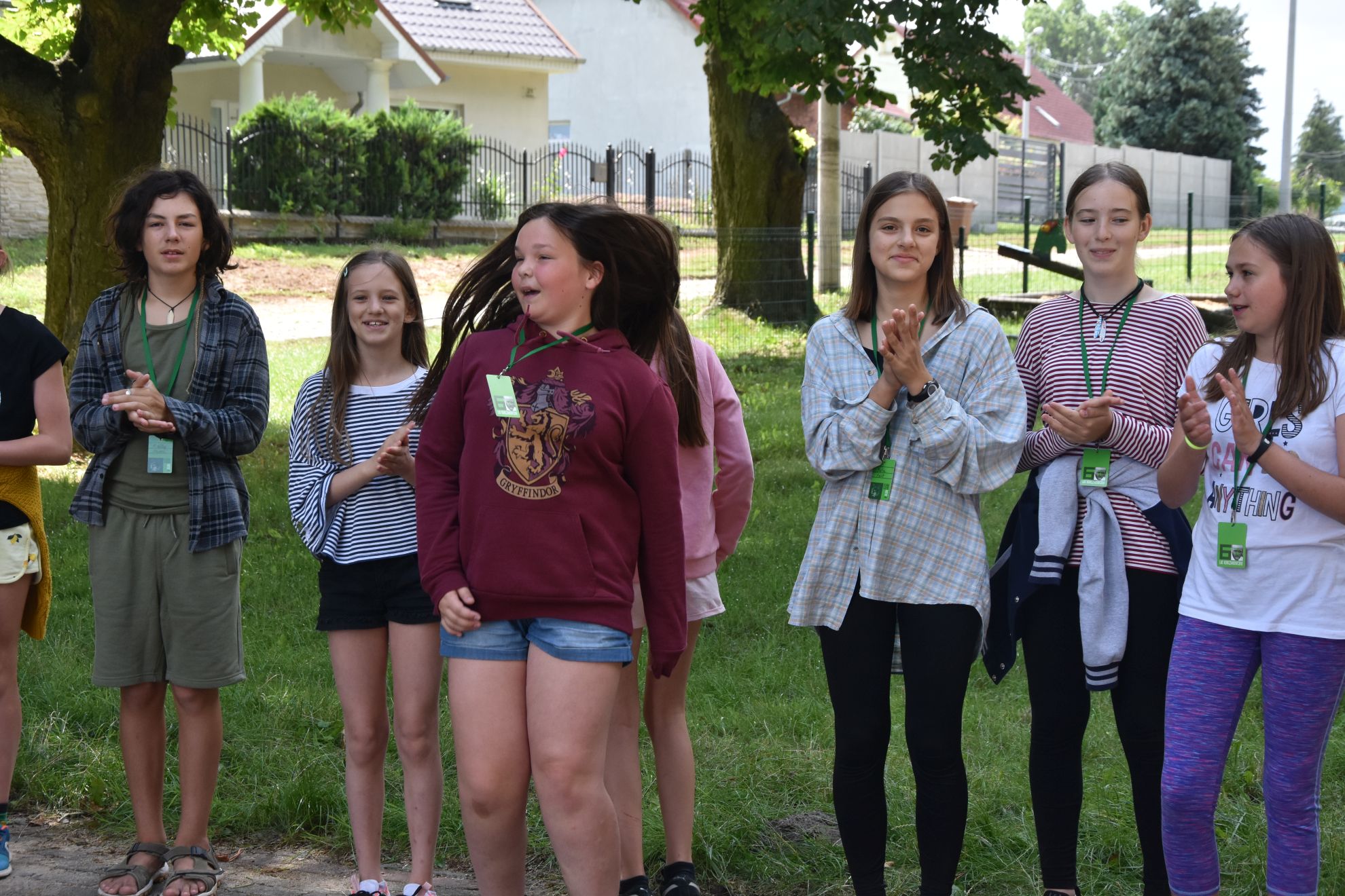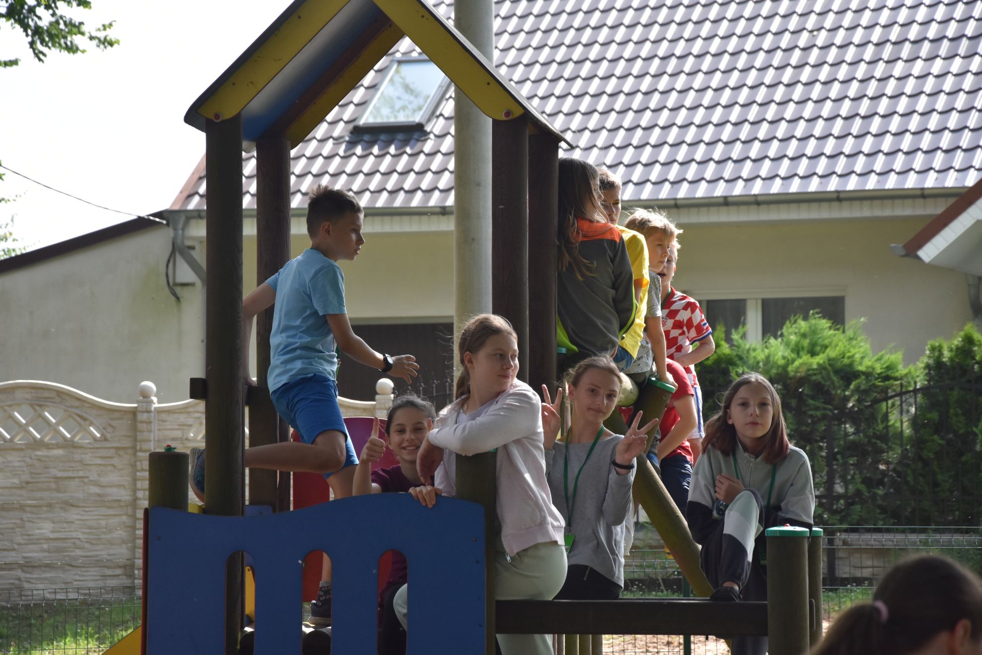 Około godziny 10-tej usłyszeliśmy alarm ewakuacyjny. Poszliśmy szybko na boisko, a następnie do Świniar, gdzie mamy świetlicę w razie niebezpieczeństwa. Dotarcie tam zajęło nam około 23 minut. Przy okazji mogliśmy pobawić się na placu zabaw i na boisku do koszykówki. Po powrocie korzystaliśmy z portu i kąpieliska. Popołudniu robiliśmy totemy. Nasz totem to mininamiot z miniludkiem, drzewkami, koszem na śmieci i toaletą.
