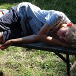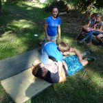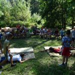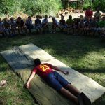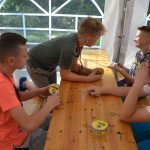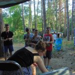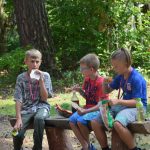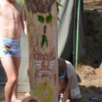 Wczoraj było pyszne śniadanie: bułeczki, kakao, ser, szyneczka, dżem. Po takim posiłku wszystkie smuteczki (tęsknota) nas opuściły. Wyruszyliśmy na zajęcia. Musieliśmy zrobić totem zastępu. Pomagał nam druh Mati. Mieliśmy różne pomysły, ostatecznie wykonaliśmy totem indiański z czterema buźkami. Dostaliśmy za niego 8,5 punktów. W czasie wolnym robiliśmy wyścigi kajaków albo pływaliśmy na kąpielisku. Na obiad dostaliśmy pyszne kotlety, ale nie wszystkim smakowała mizeria, zdania są podzielone, zależnie od gustu. Za to pomidorowa była świetna! Po południu podzielono nas na 3 grupy, które kolejno uczestniczyły w różnych zajęciach: zabawy integracyjne, pierwsza pomoc i gry planszowe. Różnym osobom podobały się różne rzeczy, czyli dla każdego coś dobrego. Na kolacji było wesoło, bo niektórzy baaaardzo posłodzili herbatę, twierdząc, że cukier jest mało słodki.