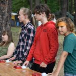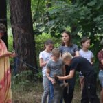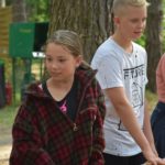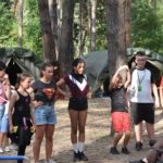 Wczoraj wiele się działo. Po pobudce była zaprawa, następnie apel i śniadanie. Po sprawdzeniu porządku w namiotach odbył się wspaniały konkurs muzyczny. Zorganizowały go druhny Gosia i Avada. Turniej polegał na tym, żeby zgadnąć, z jakiego filmu pochodzi prezentowana piosenka, kto ją śpiewa i jaki nosi tytuł. Piosenki pochodziły z bajek i filmów Disneya. Po pysznym obiedzie zorganizowano podchody, których tematem były bajki i filmy. Druhowie przebrali się za bohaterów tych bajek i czekali na nas w punktach rozmieszczonych po całym obozie, a my musieliśmy rozwiązywać różne zadania i zbierać punkty. Dzień zakończyliśmy ogniskiem, na którym śpiewaliśmy i dyskutowaliśmy na temat Internetu i jego zagrożeń oraz na temat elektroniki. Po kręgu poszliśmy spać.
