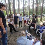 Co ciekawego robili wczoraj Korczakowcy? Żegnali się tak oficjalnie. Jednak praktycznie tylko sobie machali ręką. Bo każdy już wie, że spotkamy się znów, więc po co się smucić? Noc Patrona jest jednym z moich ulubionych momentów – jest mistyczna i klimatyczna. W bardzo łatwy sposób wzbudza we mnie emocje, przypominając, dlaczego to miejsce tak kocham. Nauki Janusza Korczaka, tak zakorzenione w nas, stały się wzorem do naśladowania w życiu. Dla wielu są to prawdy oczywiste, że dzieci mają prawa, że choć małe, są ludźmi. Wczoraj w ramach zajęć popołudniowych dostaliśmy wykład o Korczaku, który dla mnie osobiście był potrzebny, bo moja wiedza się zakurzyła, zawalona szkolnymi bzdurami. W rozmieszczonych w różnych lokalizacjach punktach na terenie obozu opowiadano nam o wielu aspektach działalności Korczaka, takich jak metody wychowawcze, twórczość pisarska, historia życia. Przypomniało to uczestnikom o przyczynie naszych spotkań, o tym, co nas autentycznie łączy. Nawet jeśli na obozie nie brakuje zgrzytów i zmian, ten element jest u nas stały jak dębu korzenie. Istota Korczakowców, w tym ich małego leśnego miasteczka, rozciąga się w górę, rośnie jako ostoja, gruby warstwowy pień. Każdy wątek korczakowskiego dębu to duszyczka zamieszana w tę społeczność. Nowe listki rosną, czasem usychają – korczakowski ekosystem. Pory roku dla tego dębu są dwie – a wczoraj mieliśmy przesilenie wyjazdowe. Rano wszyscy zrobili autopilota, czyli wielkie porządki przed wyjazdem. Zamiast druhów wyciągających nam rzeczy z namiotów, dając im odpocząć, sami targaliśmy łózka polowe out. Było przyjemniej niż myślałam, albo się starzeję i łatwo mnie zadowolić, na przykład sprzątaniem. Wieczorem, po robocie, gotowi do odwrotu, ze świeżą wiedzą i łóżkami, mieliśmy magiczny wieczór pożegnalny. Przygotowując piosenki na ostatnie ognisko zwracałam uwagę na zapotrzebowanie uczestników – niektórzy nie usłyszą ich cały rok. Wplatane w nutki gitar słowa Księgi Dziękuję – Przepraszam, potem pokaz zdjęć z całego naszego turnusu. Szybko minęły, jak błysk, te wspólne dni. Uchwycone na fotografiach chwile zauroczenia, radości, cienia – wszystkie razem tworzą harmonijną, zgodną całość. Stanęliśmy ostatni raz w Kręgu Wieczornym, złączyliśmy dłonie, a błysk iskierki przepłynął migiem. Do zobaczenia znów, koledzy i koleżanki. Nie połamcie sobie nóg podczas drugiej części wakacji.