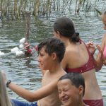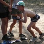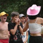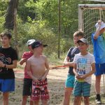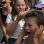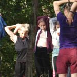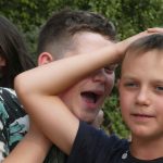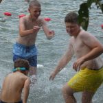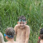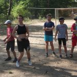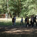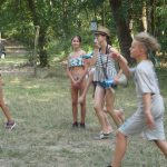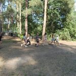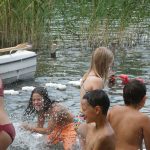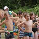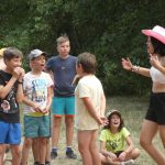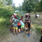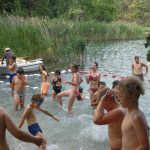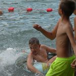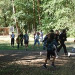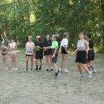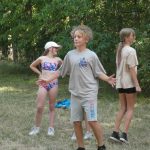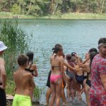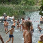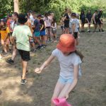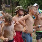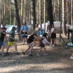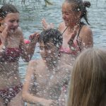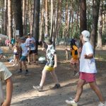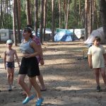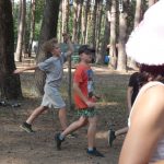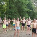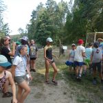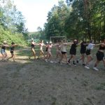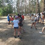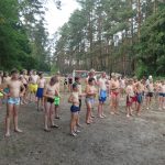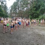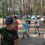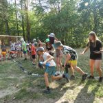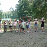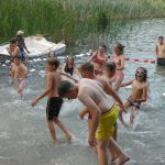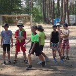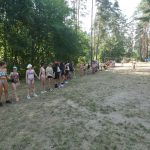 Popołudniu były pląsy i zabawy ruchowe np. pony, murarz albo przekrzykiwanie się (nawet zabawne, ale trochę bolały gardła niektórych) i gry w wodzie, bo było bardzo ciepło. Polegały one np. na chlapaniu. 🙂 Zrobiliśmy też próbę ewakuacji, tak na wszelki wypadek, żeby było bezpiecznie.