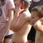 Potem zepsuła się pogoda, nagle zrobiło się ciemno, bardzo wiało i było bardzo duszno. I mocno padało. Okazało się, że nie wszyscy mają kalosze spakowane, bo myśleli, że trampki i klapki wystarczą. Trochę głupio według nas. 😛