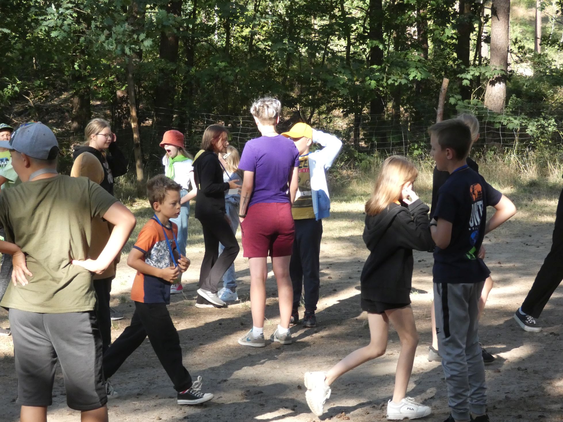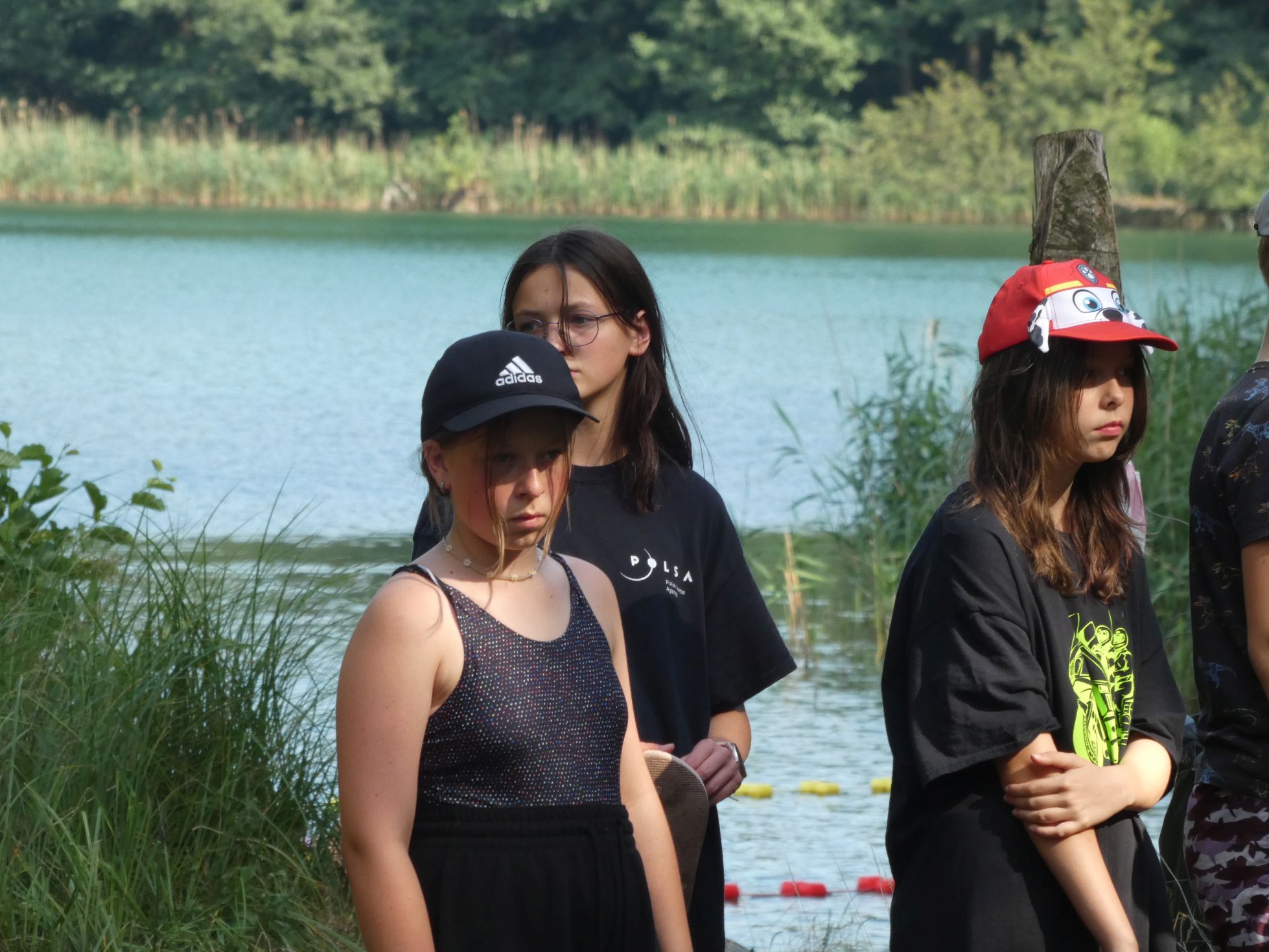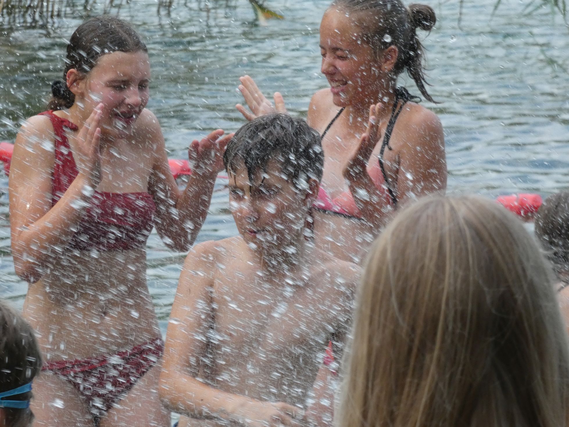 Popołudniu były pląsy i zabawy ruchowe np. pony, murarz albo przekrzykiwanie się (nawet zabawne, ale trochę bolały gardła niektórych) i gry w wodzie, bo było bardzo ciepło. Polegały one np. na chlapaniu. 🙂 Zrobiliśmy też próbę ewakuacji, tak na wszelki wypadek, żeby było bezpiecznie.