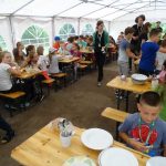 Wczoraj przyjechaliśmy na obóz do Korczakowa. Po tym jak się rozpakowaliśmy, zjedliśmy obiad. Po posiłku , zanim zaczęliśmy zajęcia, zapoznaliśmy się z regulaminami i zasadami, które obowiązują na obozie i przedstawiono nam kadrę. Potem rozpoczęły się wesołe i ciekawe zabawy integracyjne na boisku, dzięki którym poznaliśmy się nawzajem. Najbardziej nam się podobał Konik Pony, Węzeł Gordyjski, Detektywi i Złodzieje, a także Figury z Wosku. Po zajęciach zjedliśmy smaczną kolację, a potem był czas na kajaki, sport, pogaduszki i co kto chciał. Wieczorem spotkaliśmy się w Cyrku, by wspólnie pośpiewać. Nauczyliśmy się piosenek o kolejarzu, pchłach, jeżu, czajniczku i niedźwiadku. Przed snem dh. Daria czytała nam książkę „Kłamczucha”, jednak z powodu nadmiaru wrażeń długo nie mogłyśmy zasnąć. Wszystkie w naszym zastępie jesteśmy w Korczakowie pierwszy raz i jak na razie bardzo nam się podoba.