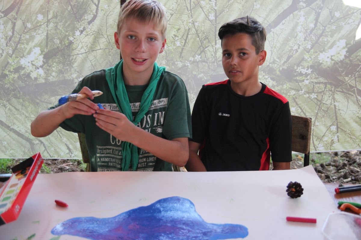 Wczoraj obudziliśmy się sami, jeszcze przed muzyką na pobudkę. Niektórzy byli niewyspani, na przykład Wojtek. Przed południem mieliśmy warsztaty. Na kajakowych było fajnie. Nauczyliśmy się lepiej wiosłować. Popłynęliśmy aż na koniec jeziora. Na zajęciach traperskich uczyliśmy się jak przetrwać w lesie bez żadnego wyposażenia. Wiemy już, jak zrobić pułapkę na zwierzynę z 3 patyków i sznurka, jak przygotować podpałkę z kory brzozy oraz jak odróżnić ścieżkę wydeptaną przez ludzi od tej wydeptanej przez zwierzęta.