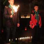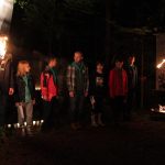 Po wielkich przygotowaniach ustaliliśmy, co będziemy robić, bo deszcz pokrzyżował nieco plany. Poszliśmy do Cyrku na pośpiewajkę. Każdy zastęp dostał potem świeczkę i przenieśliśmy się pod pomnik Korczaka. Ustawiliśmy się w kręgu. Każdy z nas powtarzał słowa ślubowania korczakowskiego, że będzie postępował tak, jak Korczak, że będzie dbał o dzieci z całego świata, nie ważne jakiego pochodzenia. Po ślubowaniu wszyscy zastępowi i zastępowe postawili świeczki pod pomnikiem. Na koniec dostaliśmy pocztówkę z cytatem z Korczaka, który brzmi: „mówiłem nie do dzieci, a z dziećmi, nie o tym, czym chcę, aby były, ale czym one chcą i mogą być.” Krąg jak zawsze zakończyliśmy iskierką. Potem poszliśmy do Cyrku pośpiewać i zastępy kolejno były wzywane pod pomnik na wartę honorową. Po warcie szliśmy do namiotów. Tak zakończył się dzień. Mamy wiele niezapomnianych , fantastycznych wrażeń, bo to wielkie przeżycie stać przy pierwszym w świecie pomniku Korczaka, naszego patrona.