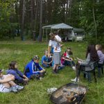 Wczoraj rano wstałyśmy bardzo wcześnie. Mimo zimnej nocy miałyśmy uśmiech na twarzy. Po śniadaniu ogłoszono, że będziemy robić totemy. Zaczęłyśmy wymyślać pomysł na nasze figurki. Potem podzielono nas na dwie grupy: pierwsza grupa poszła do cyrku na kurs pierwszej pomocy, a druga zaczęła robić totemy. My byłyśmy drugą grupą. Na początku każda z nas wymyśliła swój plan, ponieważ chciałyśmy zrobić osobne zwierzątka. Druhna wpadła na pomysł żeby zrobić mini zoo. Zaczęłyśmy od tego, że zbierałyśmy potrzebne materiały z lasu. Zrobiłyśmy: słonia, lwa, myszki i wiewiórkę. Byłyśmy zadowolone z naszej współpracy. Po skończeniu totemów poszłyśmy na zajęcia medyczne. Na początku było ciekawie, ale później zaczęło się robić nudno. Po obiedzie odbył się Bieg po Chustę. Niestety musiałyśmy współpracować z zastępem chłopców, którzy się wygłupiali. Ogólnie było ciekawie, ponieważ dowiedziałyśmy się wielu przydatnych rzeczy, które pomogą nam w Korczakowie. Wieczór zaczął się od zabaw integracyjnych. Mogliśmy się wybiegać. Następnie poszliśmy na przedstawienie, które zorganizowała kadra. Występ był o Kubusiu Puchatku. Było bardzo śmiesznie i dostaliśmy chusty od głównego bohatera. Następnie poszliśmy do ogniska i zaśpiewaliśmy kilka piosenek. Potem udaliśmy się pod pomnik Janusza Korczaka i dh. Ata każdemu podarowała chustę. Zastępowi przynieśli świeczki pod wizerunek Starego Doktora. Przyszliśmy do kręgu i przekazaliśmy sobie iskierkę. Było nam miło uczestniczyć w tym wydarzeniu. Dzień skończył się wspaniale i wesoło poszłyśmy spać.