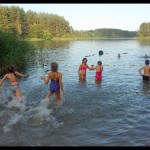 Trzydniowa obserwacja tego, co się dzieje na obozie, jak zachowują się dzieci, jakie pojawiają się problemy, skłoniła nas do wprowadzenia pewnych zmian w organizacji dnia. To, co było tak pożądane na pierwszym turnusie, czyli czas wolny (wolny z pozoru, bo to 2 godziny na kajakowanie, kąpiel, piłkę, a także pranie, książkę czy pogaduszki z kolegami) wśród młodszych dzieci nie zawsze się sprawdza. Większość pędzi do ulubionych zajęć, niektórzy jednak nie potrafią sami się zająć sobą, a brak zajęcia to nuda albo tęsknota za domem. W tej sytuacji postanowiliśmy zaproponować coś więcej. Oferujemy więc zajęcia karate, plener fotograficzny, zajęcia plastyczne, naukę pływania, warsztaty z improwizacji i kilka innych. Jesteśmy ciekawi, jak ten system się sprawdzi. Każdy może wybrać coś dla siebie, ale jeśli nie chce – nie musi. Może odpoczywać po swojemu. W końcu to jednak tak zwany czas wolny. Mamy nadzieję, że ci niezdecydowani szybko przekonają się, że aktywność jest ciekawsza niż bezczynność, a zaangażowanie, choćby okupione zmęczeniem, daje więcej radości niż leżenie brzuchem do góry.