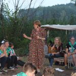 Wieczorem na ognisko przyszła do nas Bajarka, która opowiadała nam różne historie. Pierwsza o plemieniu z Meksyku, które miało swojego wodza-magika, druga o Hassanie, jego matce i jego siostrze, którzy próbowali zarobić pieniądze na utrzymanie rodziny. Trzecia natomiast opowiadała o lisie i wielbłądzie, w której lis musiał się usamodzielnić, by móc pozostać w domu wielbłąda. Bardzo mi się to podobało, bo bajki były interesujące i z udziałem dzieci. W ramach wieczornej lekcji muzyki klasycznej poznaliśmy Beethovena i fragmenty IX Symfonii i Sonaty Księżycowej. W drugim programie odbył się w Korzonku koncert przygotowany przez dh. Milupę, na który już jednak nie miałem siły.