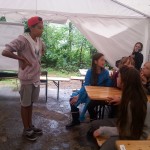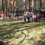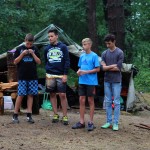Yesterday it was a very rainy morning and we are very thankful for the guys that helped us. They dug holes around the tent so it won’t leak in to the tent, they took the logs that could have been struck by lightning and they kept us all safe. Later we had the Olimpiada. We played a lot of different and fun games, like running through obstacles, trying to throw the ball into the ring, trying to hit the scores, throwing rocks into holes, trying to throw a ring on to a stick. We had a lot of fun and hope we will have this kind of Olimpiada again. After the Olimpiada everything went by schedule. But after the campfire we had a concert with candils. We listening to music that makes us feel better and help us to think about ourselves. Then later before bed Alan and Ilia thought they saw a ghost, but it turned out to be our friend that wanted to scare us. It was a great and fun day. Thank you.