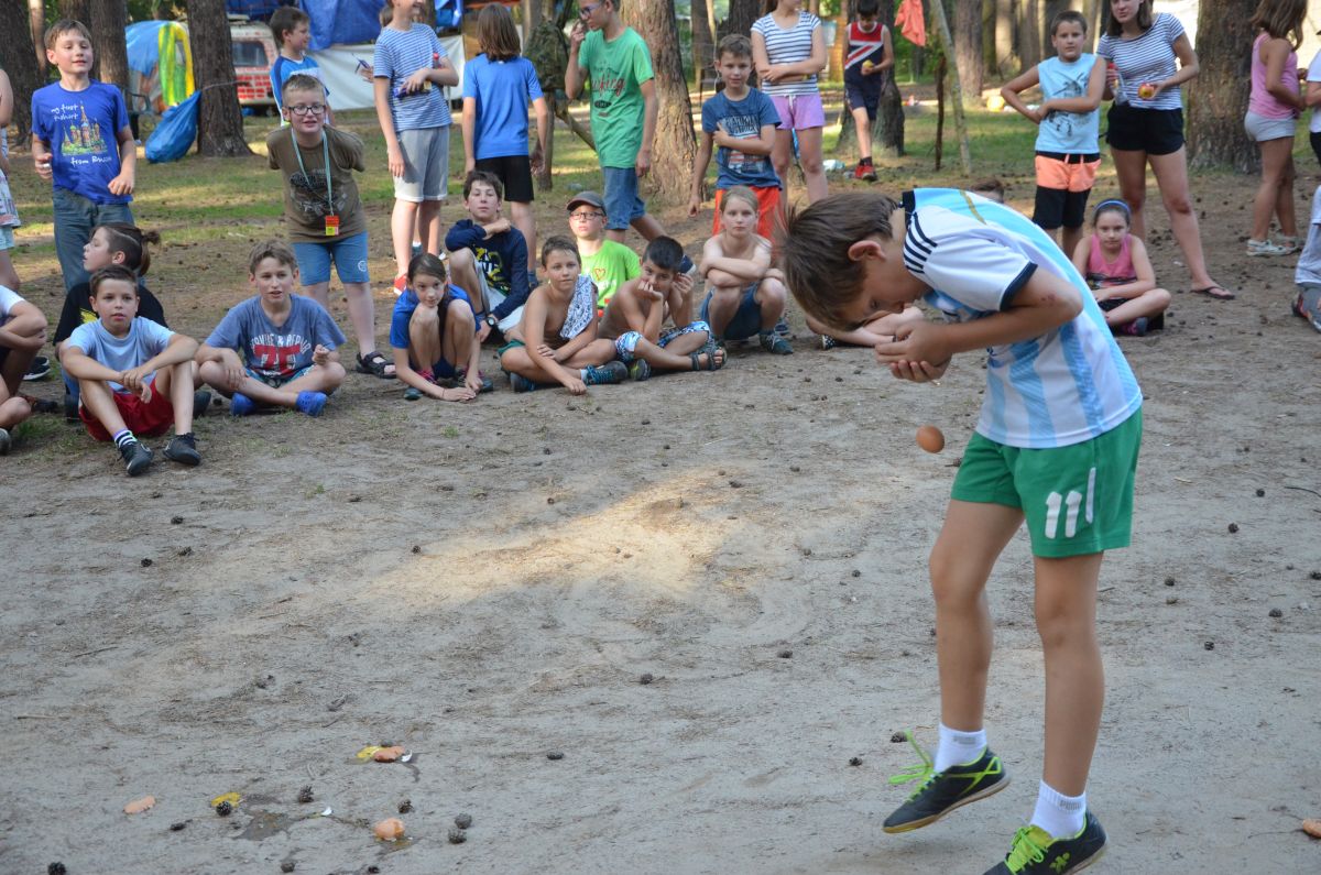 Po obiedzie poszliśmy na Olimpiadę Sportową. Było tam wiele konkurencji, od rzutu ringo na colę, przez przysiady po odbijanie rzutek. Dla nas najciekawsze były rzuty na colę. Zrobiło się bardzo gorąco, prawie 30 stopni, ale po wszystkim wskoczyliśmy do jeziora. Potem zawołała nas kadra i okazało się, że mamy „pilota”! Tak, tak, zastęp 6, który miał same 5 i 4+ za czystość, czyli maksymalne oceny! Widocznie niesłusznie wystawione…W zasadzie było śmiesznie i wesoło przy wspólnym sprzątaniu.